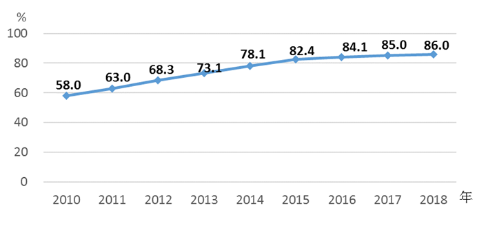 图8 2010—2018年全国农村集中式供水受益人口比重情况