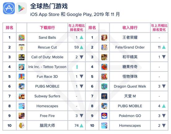 和国际榜单上的「脑洞大师」一样,本月国内游戏下载榜单中也出现了益智类游戏「神脑洞游戏」和超休闲游戏「Sand balls」。「神脑洞游戏」不同于一板一眼的脑筋急转弯,更倾向于目前红爆网络的各种“神脑洞”解密,是一款趣味性极强的休闲解压手游。而「Sand balls」则是一款极具魔性的超休闲闯关类小游戏,简单的玩法和精心的机关设计,让这款游戏成功登上下载Top10榜单。