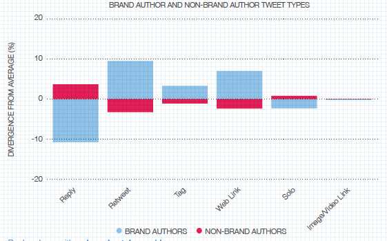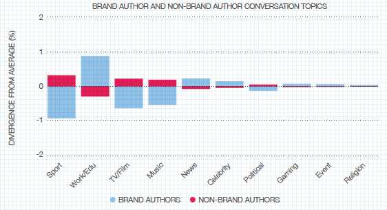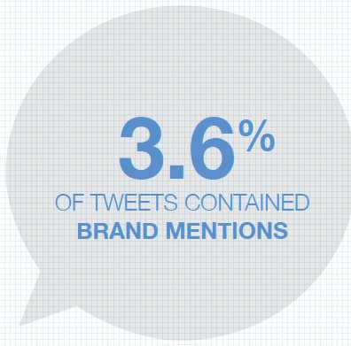 品牌被提及的次数超过音乐和名人,和电视/电影相当,占所有Twitter资讯的3.6%