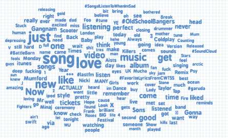音乐是最富情感性的讨论话题,“Love”,“Like”,“Perfect”,“Think”,“Feel”等情感性很强的词常出现
