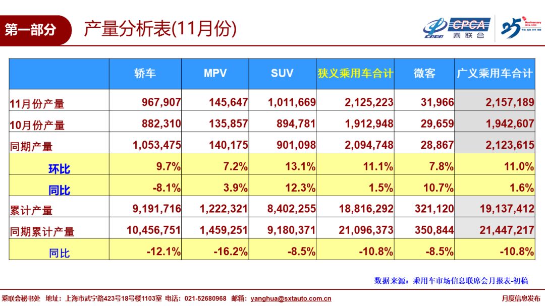 11月轿车零售仍同比下降9.0%,其中日系轿车同比去年11月增9%,德系和自主环比10月增长11%。11月MPV同比下滑16.5%,其中日系MPV环比同比均较好。