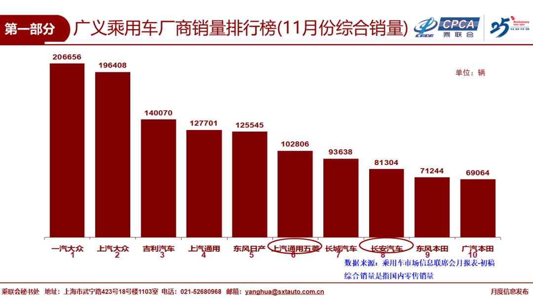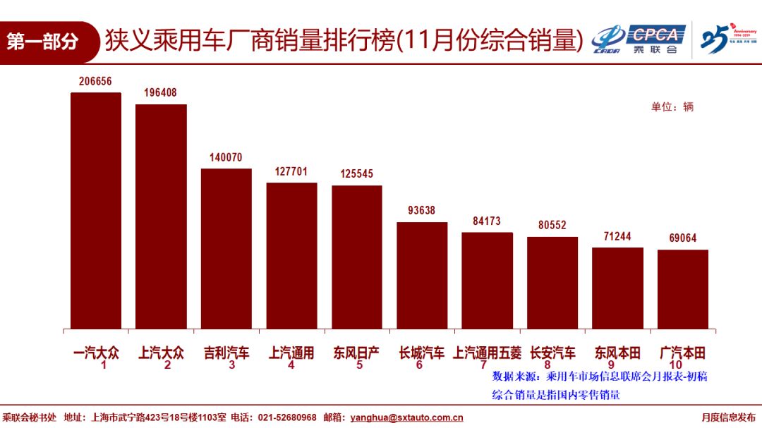 零售:11月全国乘用车市场零售193.7万台,同比下降4.1%,较10月同比增速改善2个百分点;11月零售环比增长5.1%,相近于2018年的11月环比3%增速,今年11月的走势稍有改善。今年1-11月狭义乘用车零售同比下降7.9%,下降幅度较1-10月收窄1个百分点。