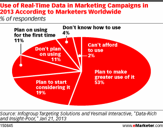 2012年由Infogroup Targeting Solutions 和 Yesmail Interactive共同发起的一项调研指出,全球53%的营销者说他们计划在2013年更好的来利用实时数据。