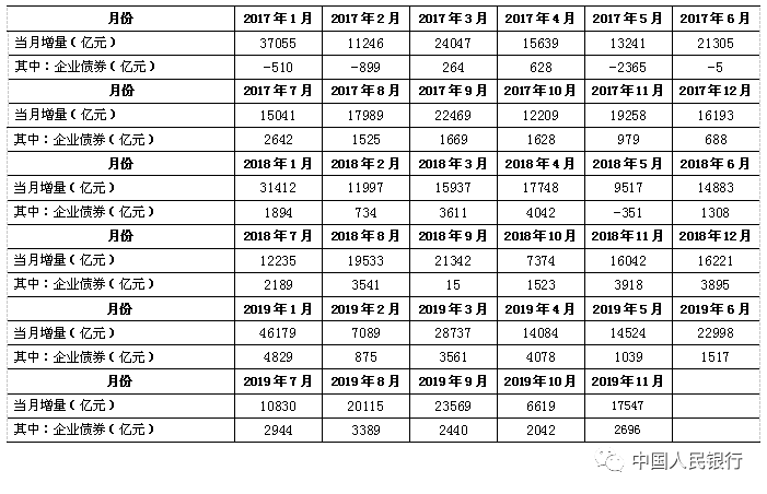 注2:2019年9月起,人民银行进一步完善“社会融资规模”中的“企业债券”统计,将“交易所企业资产支持证券”纳入“企业债券”指标,2017年以来可比口径数据见表1。