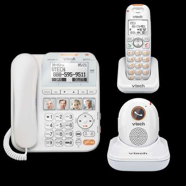 VTech CareLine系统包含三部分组成:一个适合老年人使用的有线座机、一个无线电话以及一个安全座,这三部分将会组建一个简单的安全系统,而且没有任何服务费。