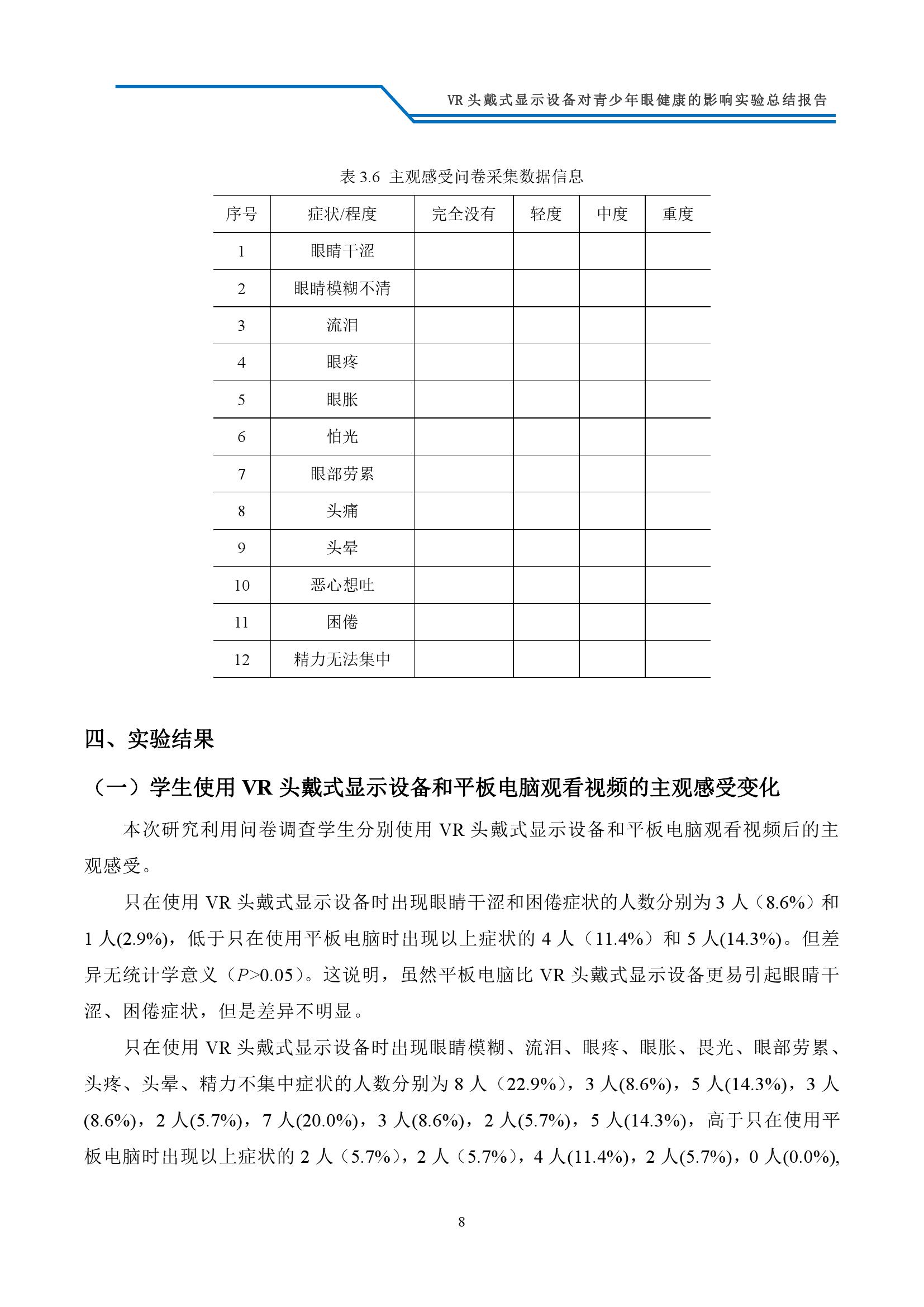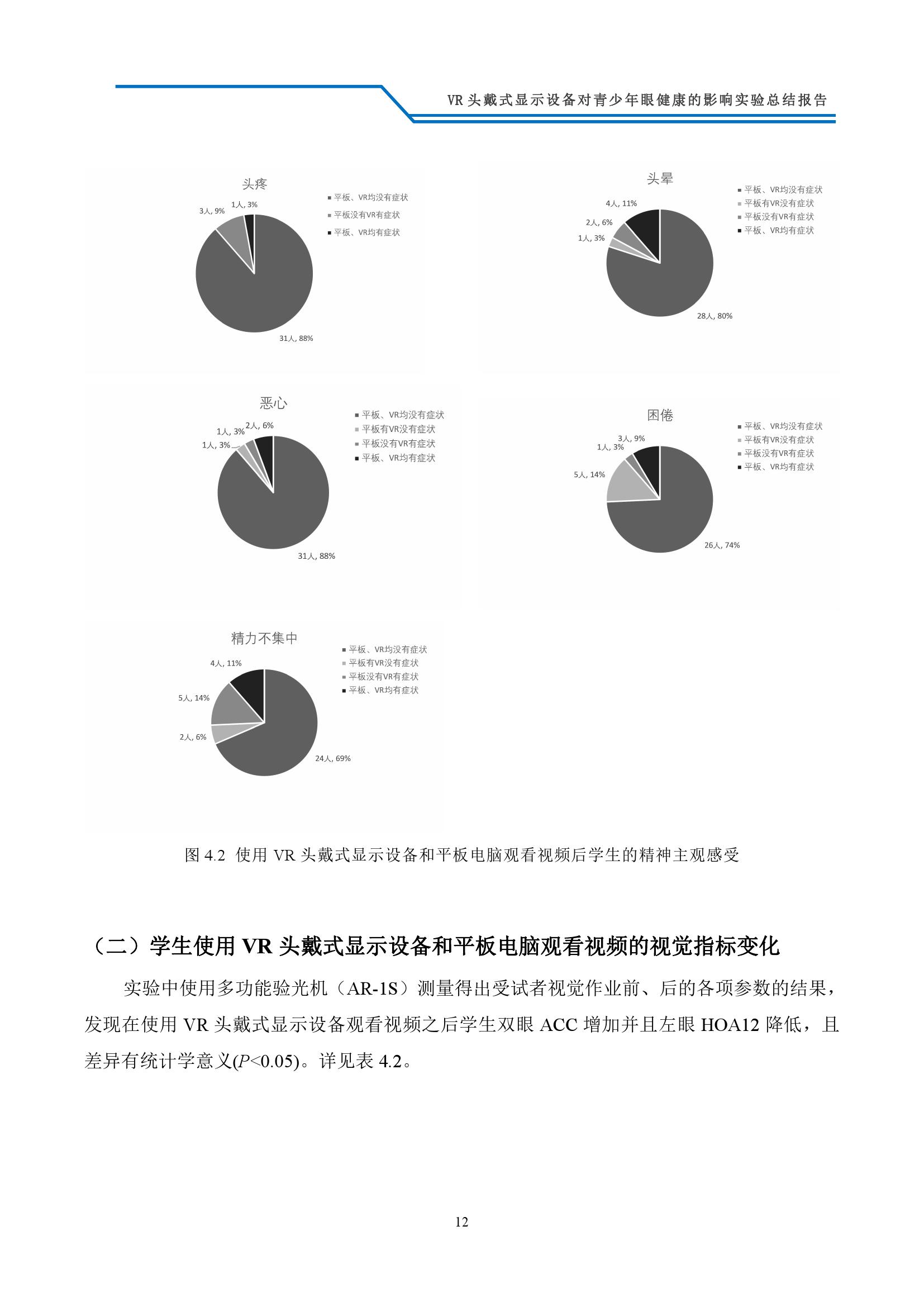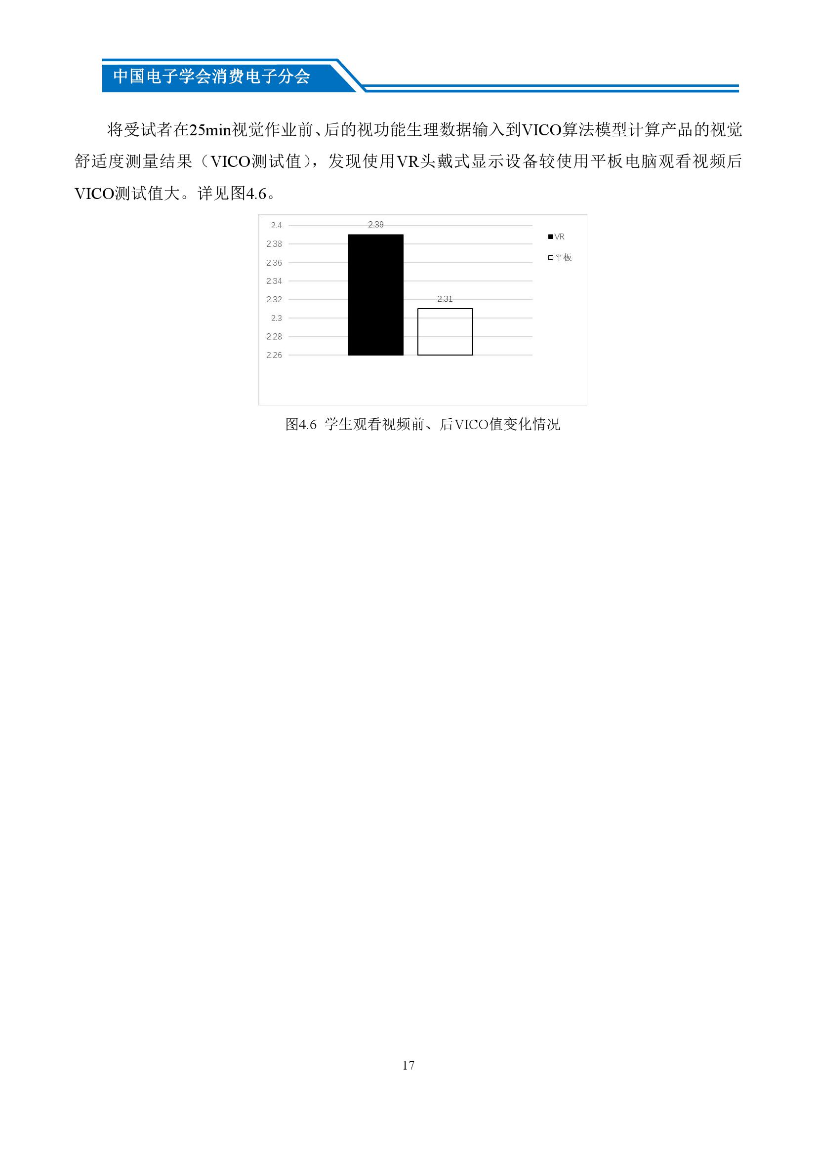 VR头戴式显示设备对青少年眼健康的影响实验总结报告 更多阅读:TrendForce:2025年Q1 OLED显示器出货50.7万台,同比增长175%SuperData:2018年XR(混合现实)行业调查报告The VR Fund :2017年第二季度 AR 公司行业图谱Common Sense:虚拟现实的隐私担忧报告VRDC:2017年VR/AR创新性报告Google VR:关于观众如何体验VR及其对于新闻工作者的意义的人种学研究HTC财报:2023年2月HTC营收2.51亿新台币 同比减少21.38%IDC:2022年中国 AR / VR 头显出货120.6万台 其中AR出货10.3万台IDC:2023年AR/VR耳机出货量将增长30%以上郭明錤:预计2022年Meta头显总体发货量将达到1200万台GlobalData:预计2030年VR行业市场规模将达510亿美元eMarketer :调查显示大部分用户表示VR设备比预期更好Digi-Capital:过去12个月中国计算机视觉/AR投资增长3倍VR新观察:2017年Q3 VR 行业全景热度观察Counterpoint:2022年中国扩展现实出货量超过110万台