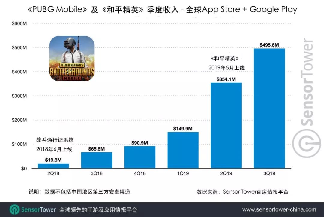 Sensor Tower 商店情报数据显示,得益于2019年卓越的市场表现,战术竞技手游《PUBG Mobile》及《和平精英》目前全球App Store和Google Play的总收入已突破15亿美元。