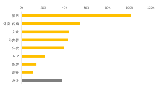 在旅游方面,2018年,深圳旅游夜间消费占比是39.4%,在16个城市中最高。在文化娱乐方面,深圳文化娱乐(具体包括电影演出、休闲娱乐、美发美甲等,其中KTV和酒吧属于休闲娱乐类,因为KTV和酒吧具备典型的夜间消费属性,所以单独进行分析)的夜间消费占比是46.5%,在16个城市中处于中等位置。成都、杭州、长沙等城市的文化娱乐夜间消费占比都超过了49%。