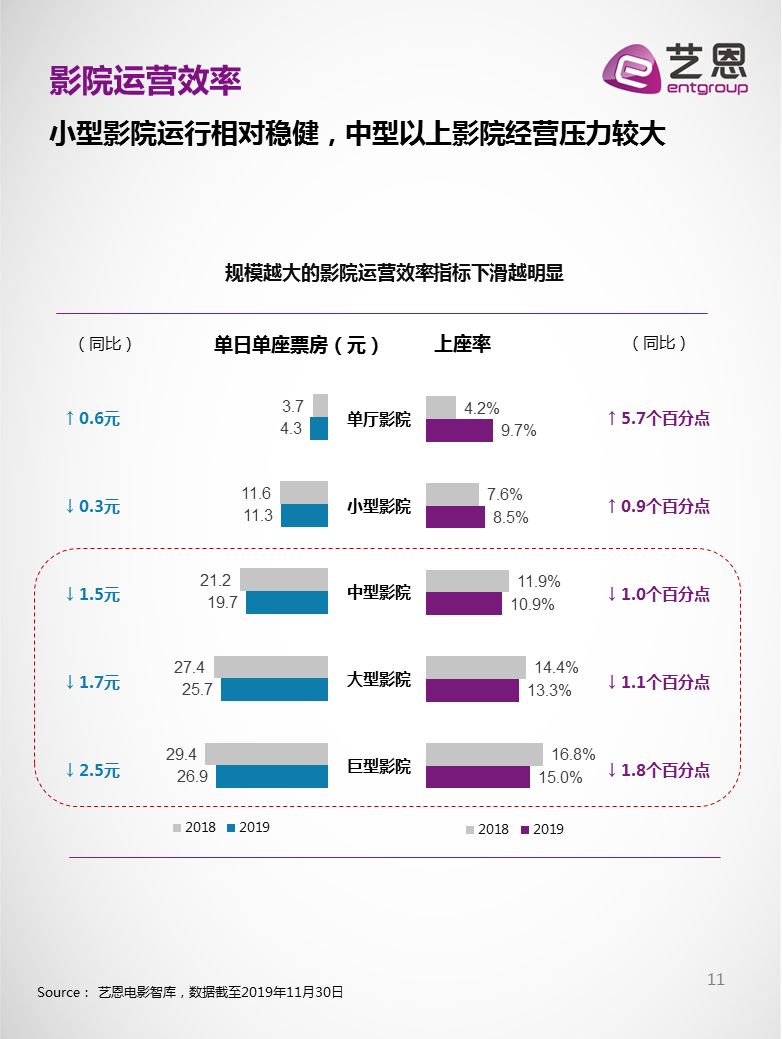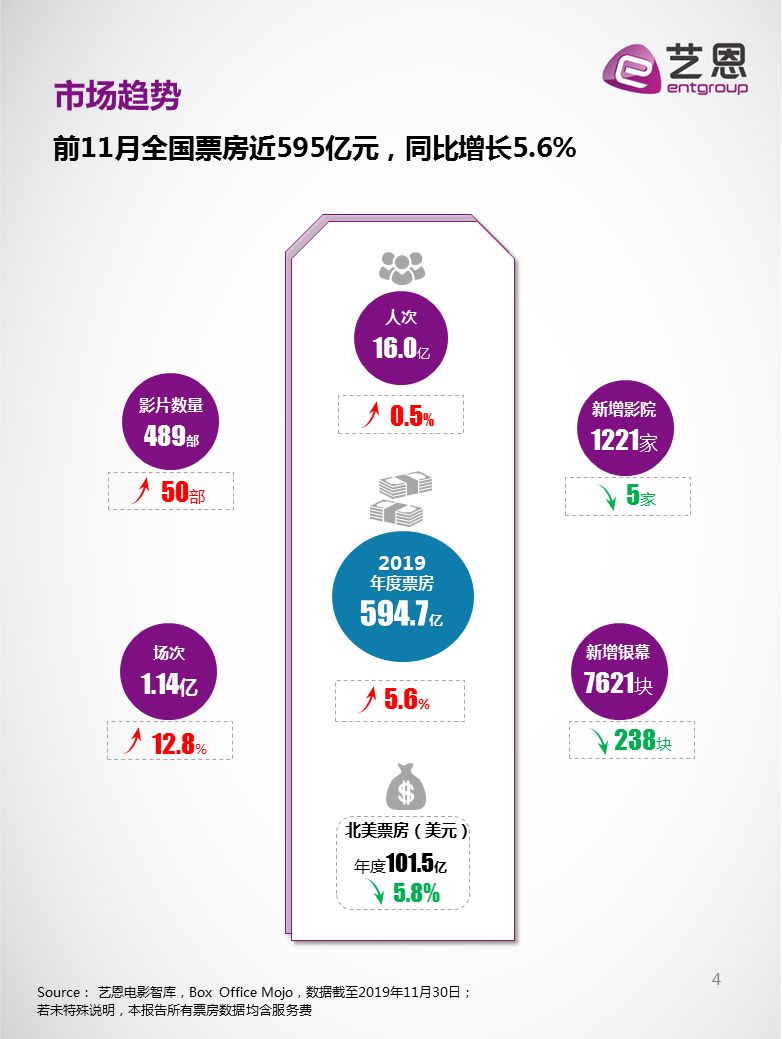 转眼已至2019年年尾,前十一个月全国电影市场收获票房近595亿元,同比增长5.6%,观影人次同比微增0.5%。市场大盘继续小幅上扬,但在内容供给、影院建设和运营上均面临一定问题和挑战。