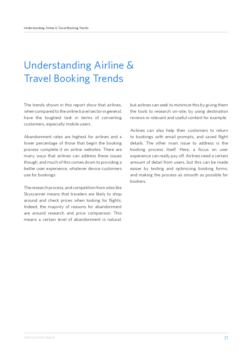 SaleCycle发布了新报告“理解航班和旅游预定趋势”。