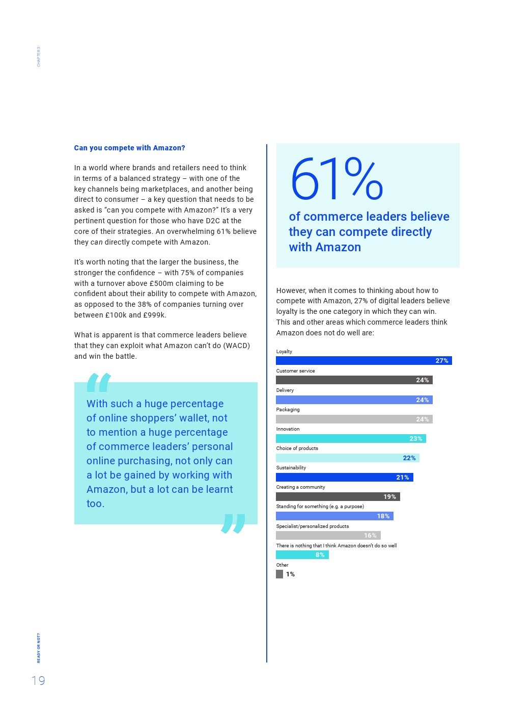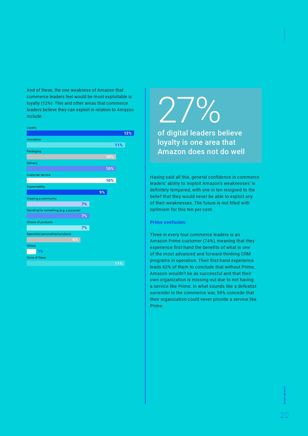 27%的电子商务领袖认为忠诚是亚马逊做得不好的一个领域。