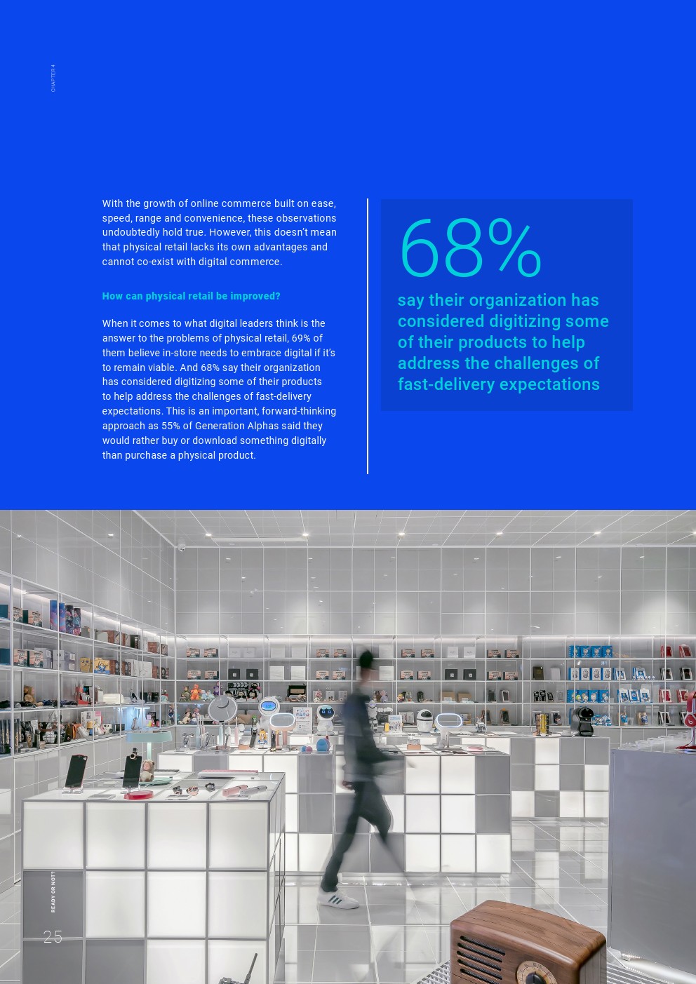 69%的电子商务领袖已经考虑将他们的一些产品数字化,以帮助解决快速交付期望带来的挑战。