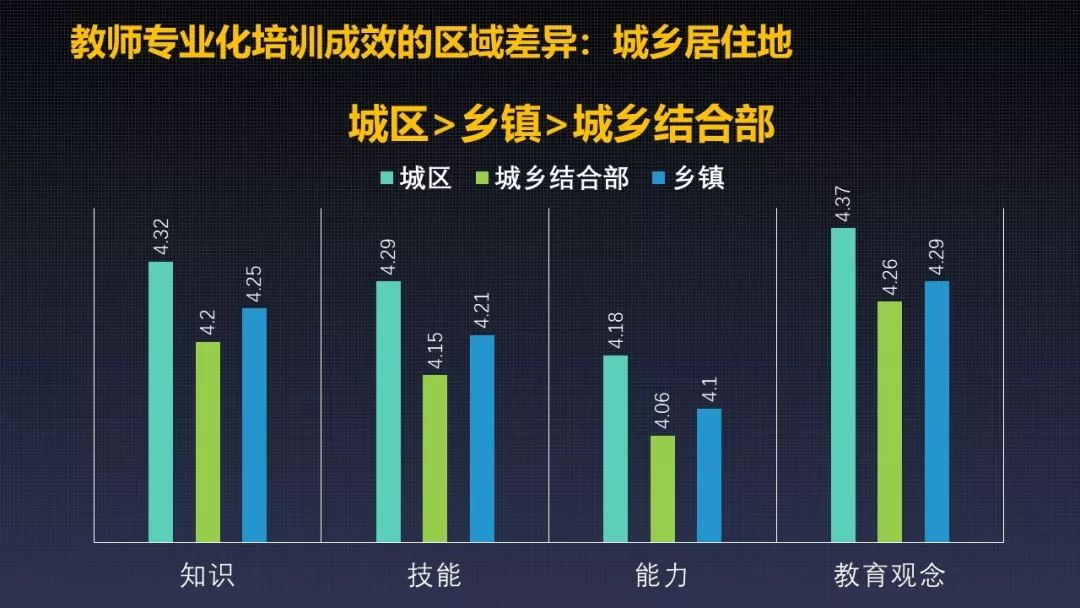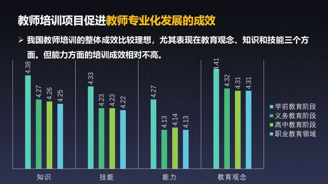 《白皮书》以成效产出的视角,重点从教师培训项目促进教师专业化发展的成效、促进教师教育信息化的成效、教师培训成效是否存在区域差异、不同培训模式对教师培训成效的影响等四个方面,解读当前我国教师培训的发展现状。
