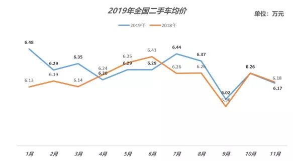 2019年11月,全国二手车平均价格为6.17万元,与上月相比均价下降了0.09万元。与去年同期相比,下降0.01万元。接近年末,过了12月份将进入新的一轮价格走低,大部分经销商会调整价格,增加成交量,二手车市场需求较为活跃。