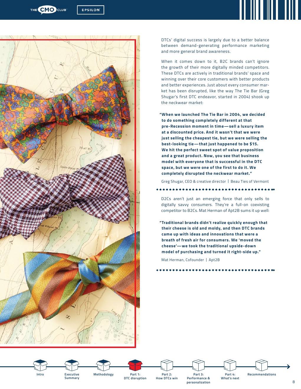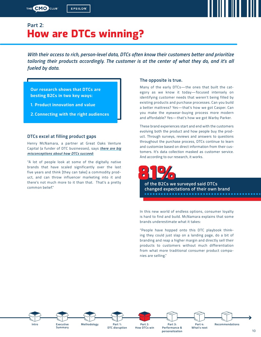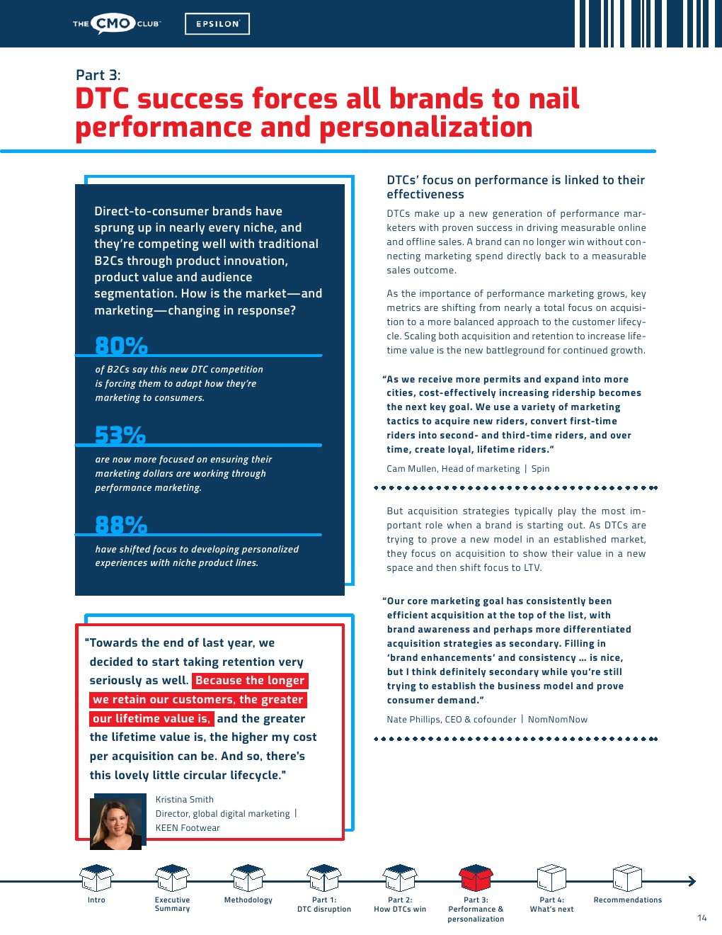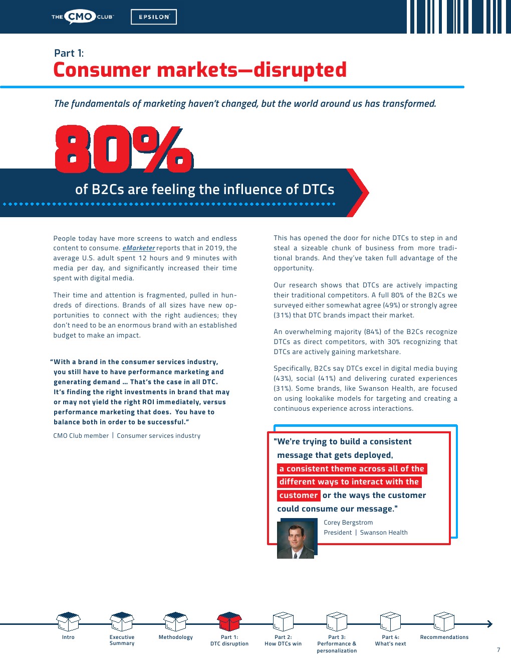 4/5的传统B2C品牌(80%)认为直接面向消费者(DTC)的品牌正在影响他们的市场,这种发展主要源于DTC基于绩效的数字营销。