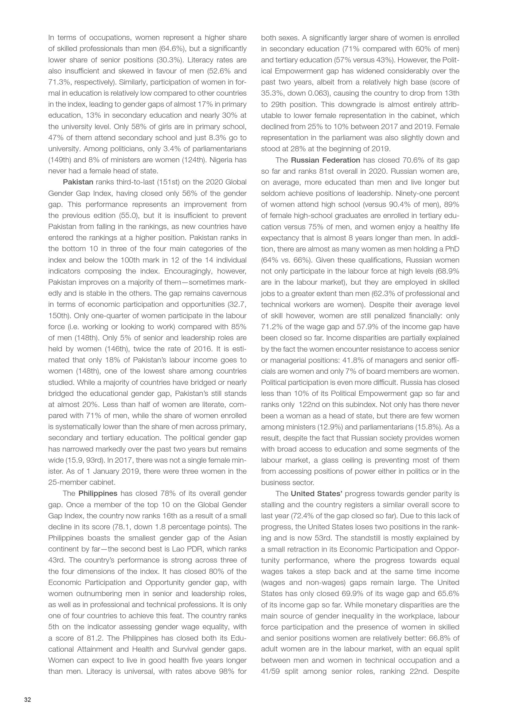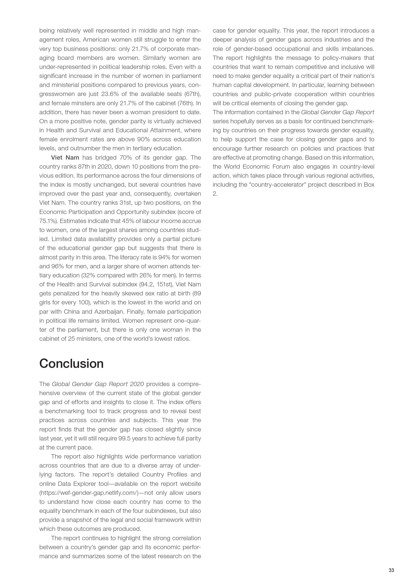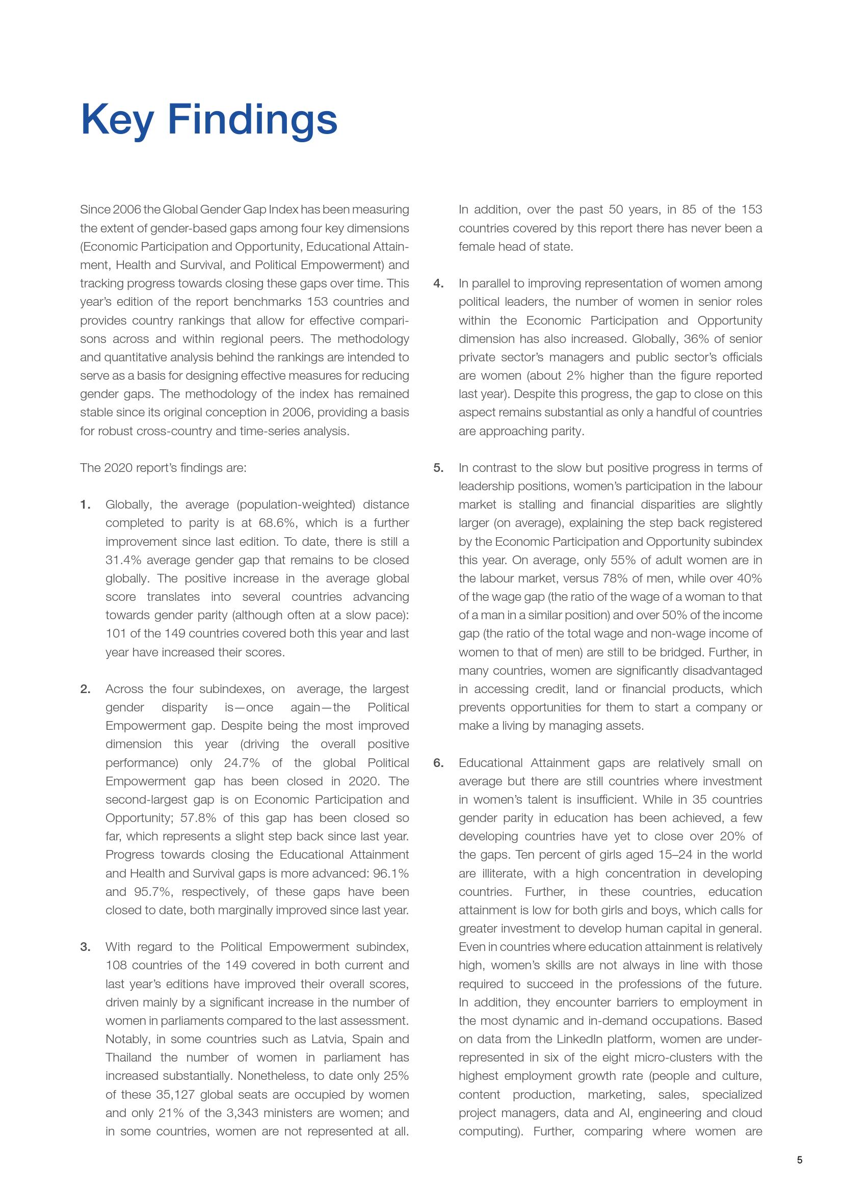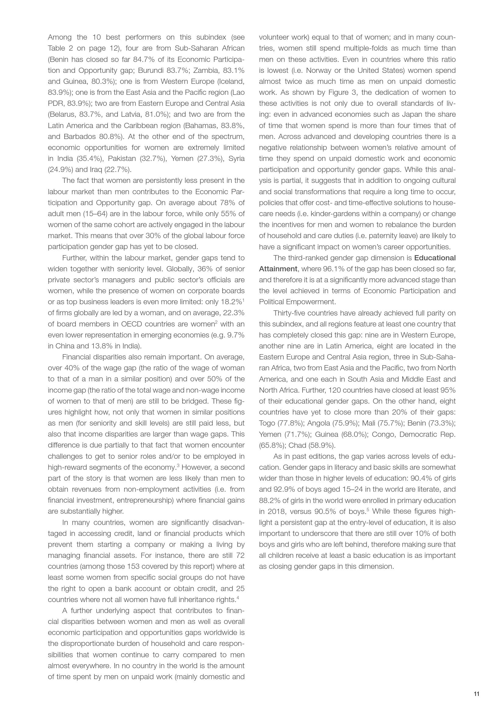 《全球性别差距报告》是世界经济论坛“塑造新经济和社会的未来”平台的旗舰出版物。该平台为相关各方提供机会,助力打造繁荣、包容和公平的经济和社会。平台重点在三大相互关联的领域共同制定全新愿景:增长和竞争力;教育、技能和工作;以及平等和包容。各利益相关方通过这一平台携手合作,深入了解各项复杂议题,制定新型模式和标准,推动各方加大协作力度,共同促进系统性变革。