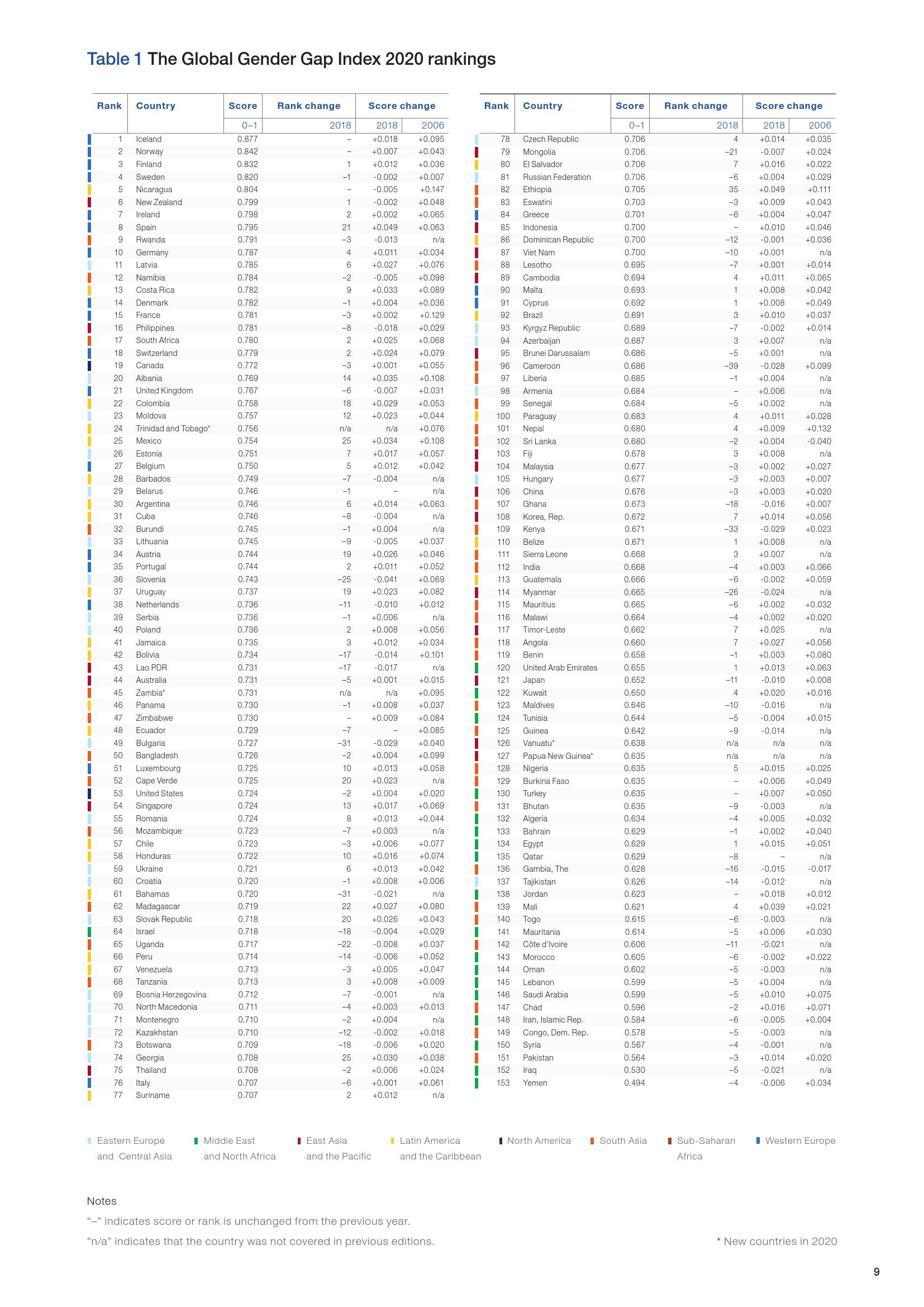 - 冰岛仍然是世界上性别平等状况最佳的国家,其次是挪威、芬兰、瑞典和尼加拉瓜