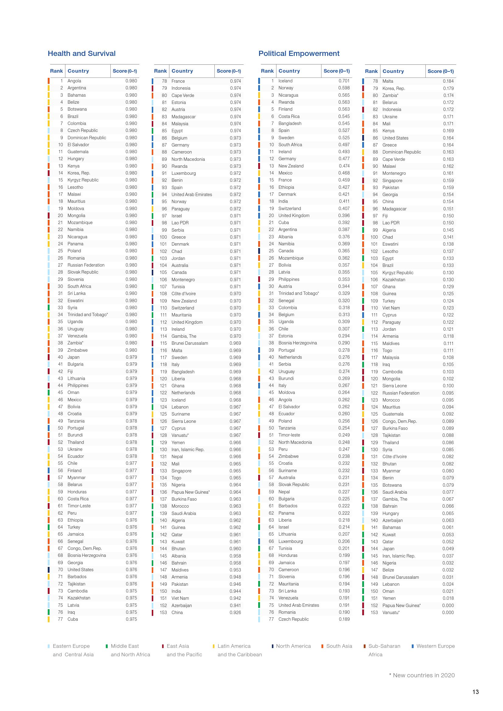 今年进步最大的国家包括西欧的西班牙、非洲的埃塞俄比亚、拉丁美洲的墨西哥和东欧以及中亚地区的格鲁吉亚。这些国家在排行榜上的位次都上升了20名以上,这主要得益于他们在政治赋权方面的进展。