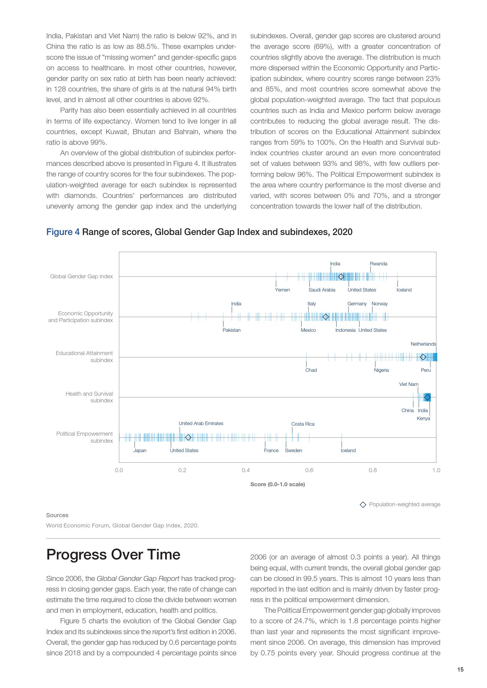 - 按照当前政治、经济、卫生和教育等领域的进展速度,全球范围的性别差距要99.5年后才能全面消除
