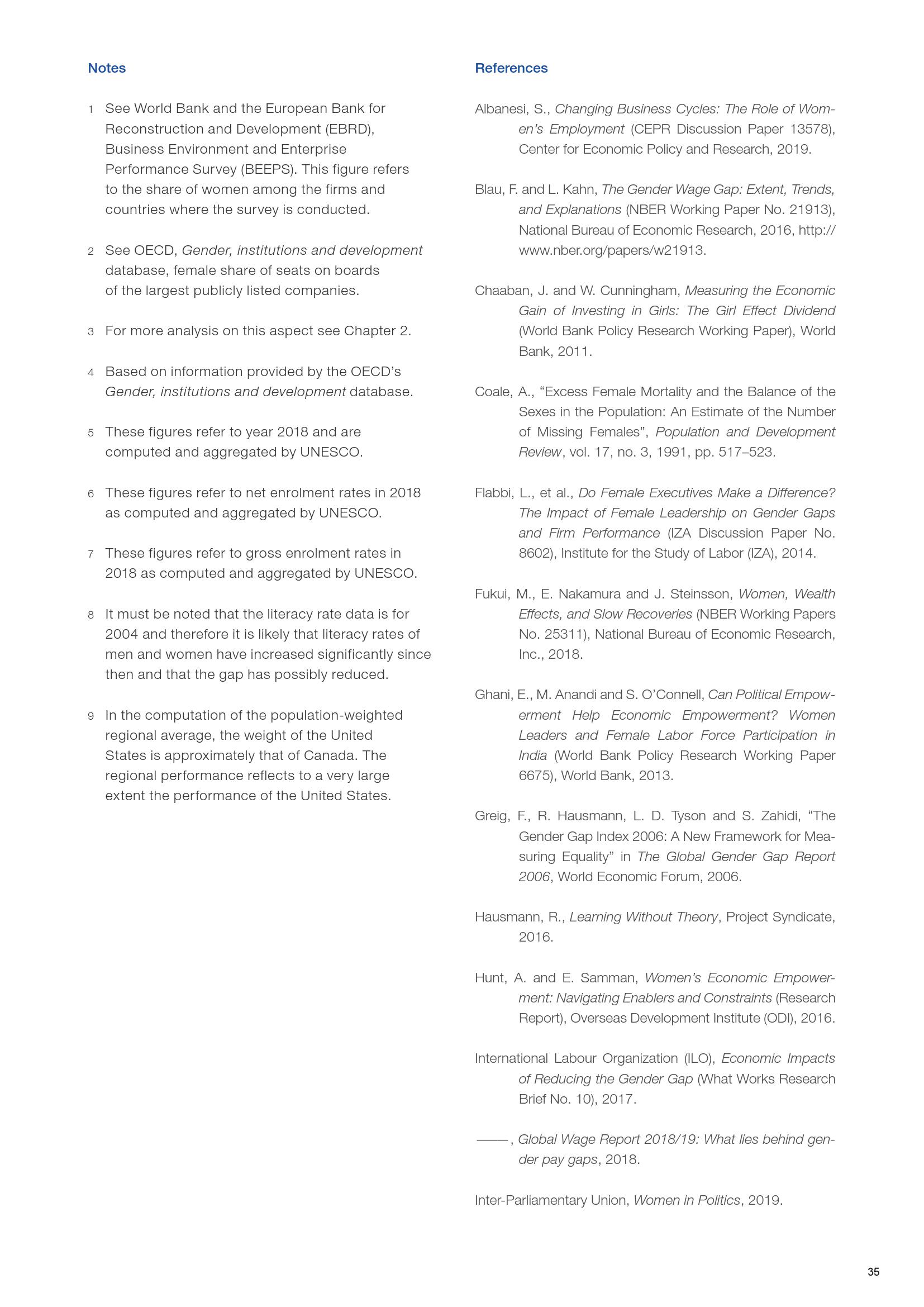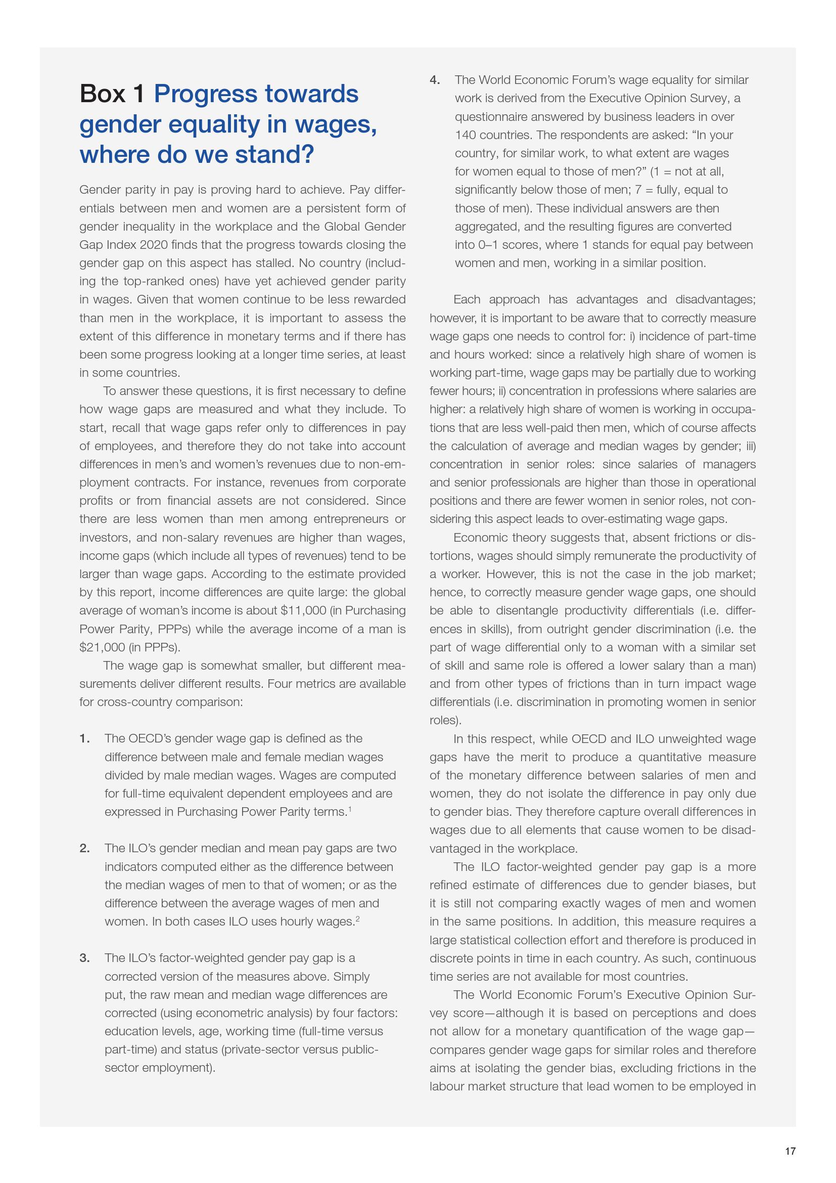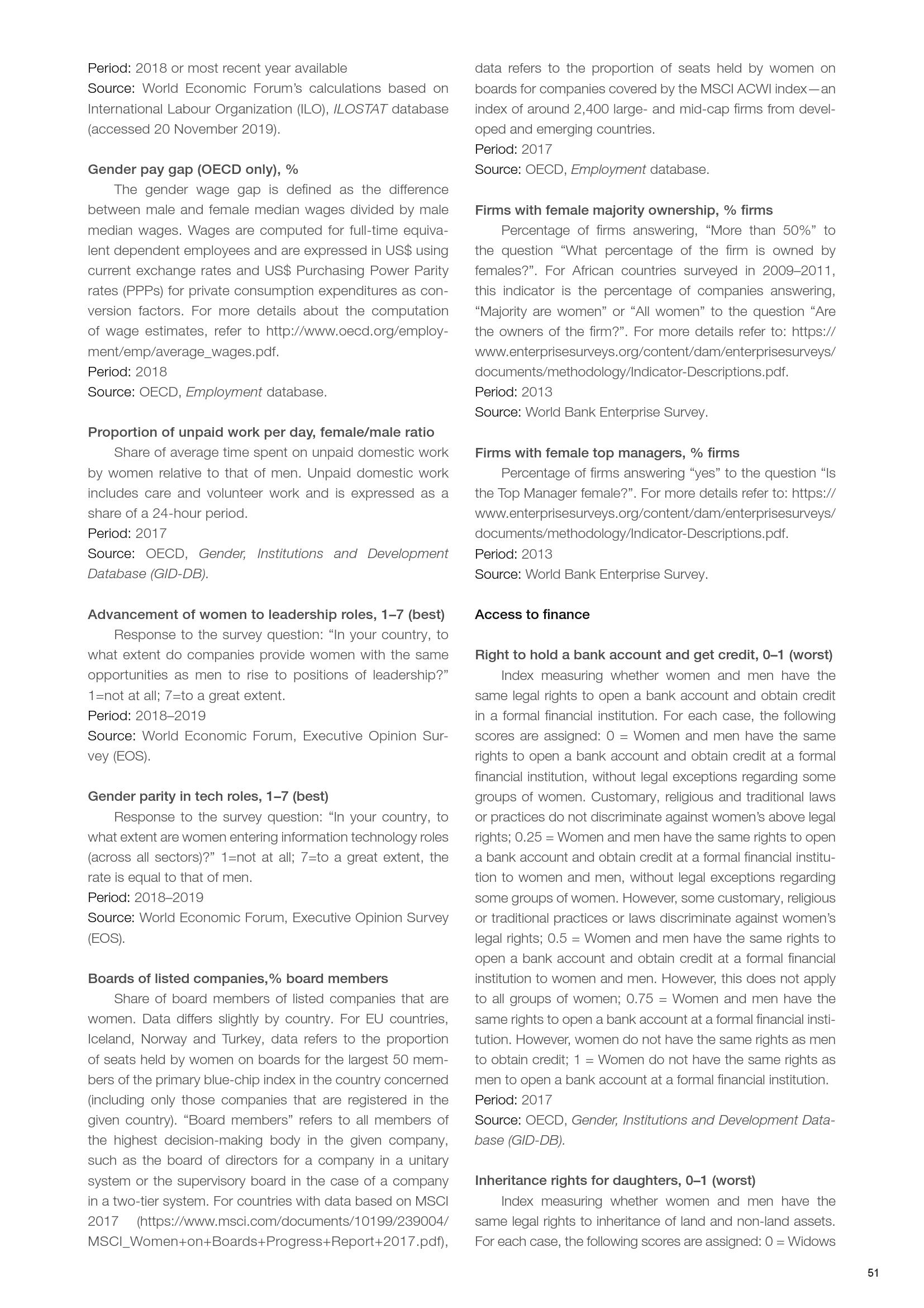 再次,社会上缺乏提供家庭照料的服务和融资渠道等根深蒂固的因素也在很大程度上限制了女性的职业机会。在有相关数据可查的国家中,女性在照顾家庭和义务服务上花费的时间至少比男性多出一倍;缺乏融资渠道则抑制了女性创业热情,而创业是决定收入水平的另一项重要因素。