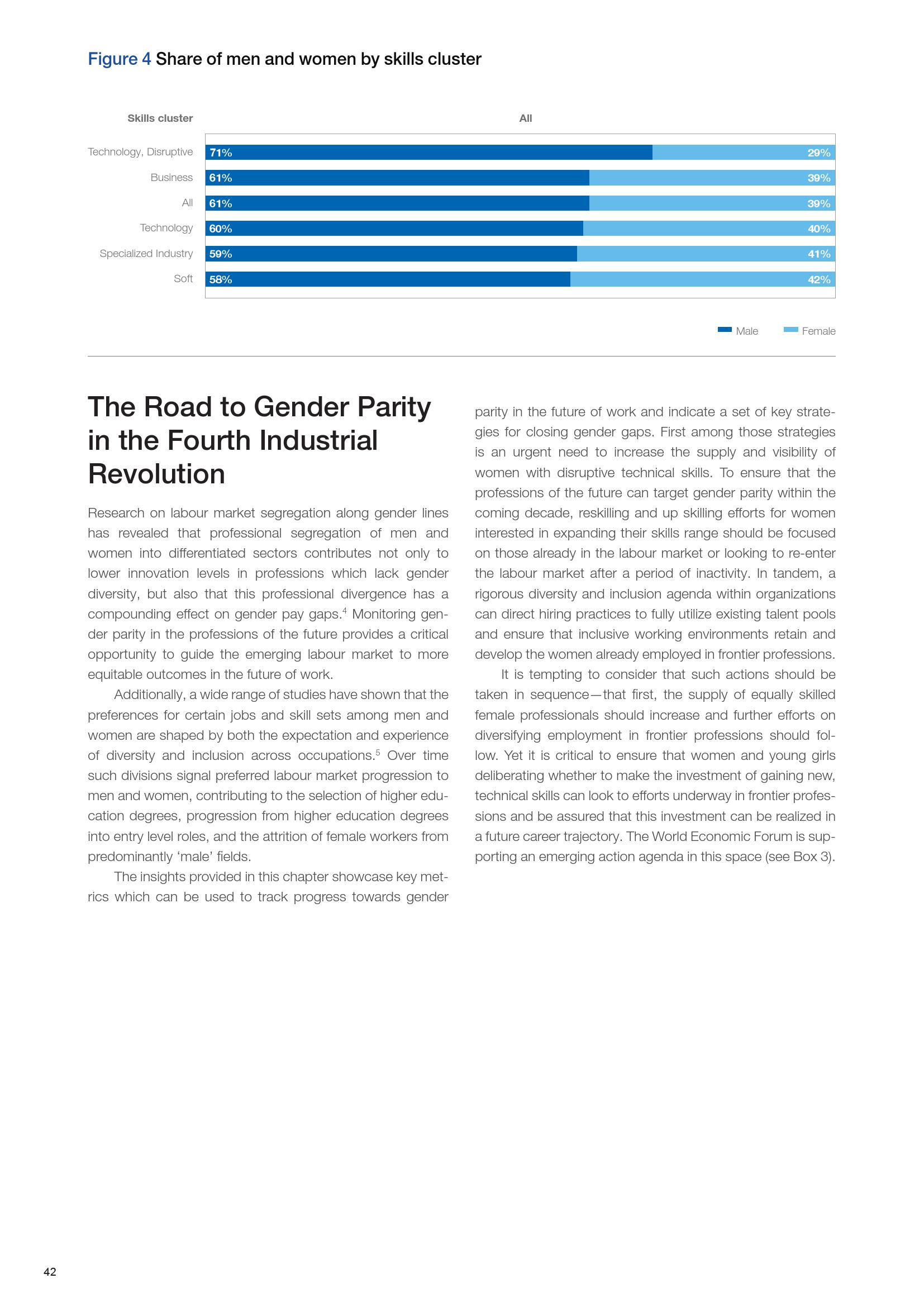 根据我们的数据,面对上述现实,领导者要想消除未来的性别差距,需要应对两大挑战:第一个也是最显而易见的挑战是,必须加大行动力度,为女性提供必要技能,帮助他们胜任需求量最大的职位。如果不采取这样的措施,将会产生经济成本,因为这些行业技能的缺乏将会抑制经济增长。