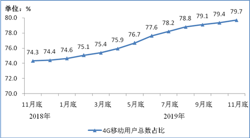 图2 2018年11月底-2019年11月底4G用户总数占比情况