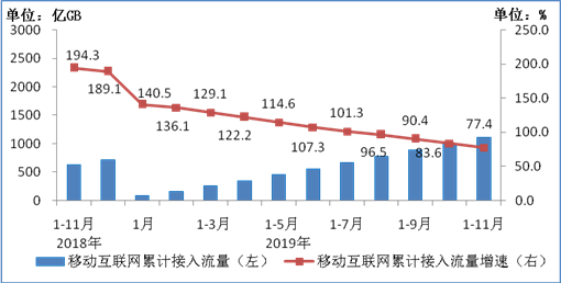 图4 2018年11月底-2019年11月底手机上网用户情况