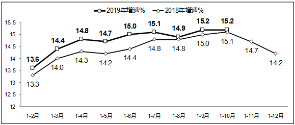 图4 2018-2019年1-10月软件业从业人员工资总额增长情况