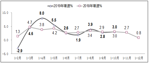 图2 2018 年-2019年1-10月软业利润总额增长情况