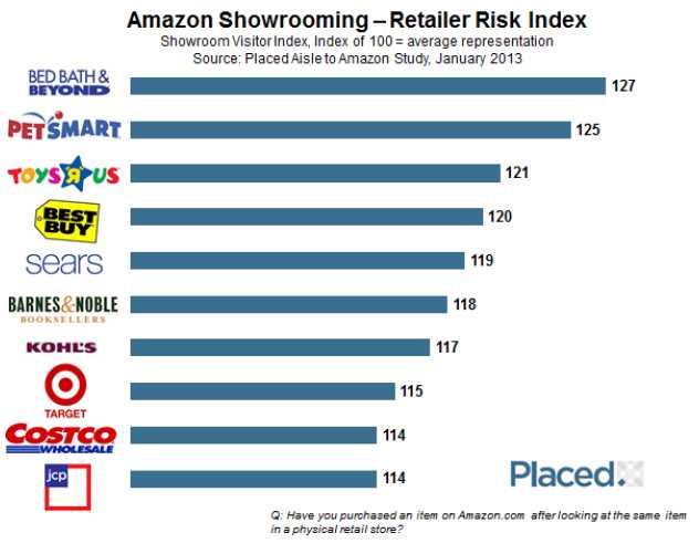 Placed的研究基于14,925位美国用户的调研结合2013年1月收集的线下将近10个地点数据,通过直接测量用户在实体世界中的轨迹,Placed给出了亚马逊改变零售业态的数据,以及零售商应该怎样应对来保护他们的生意
