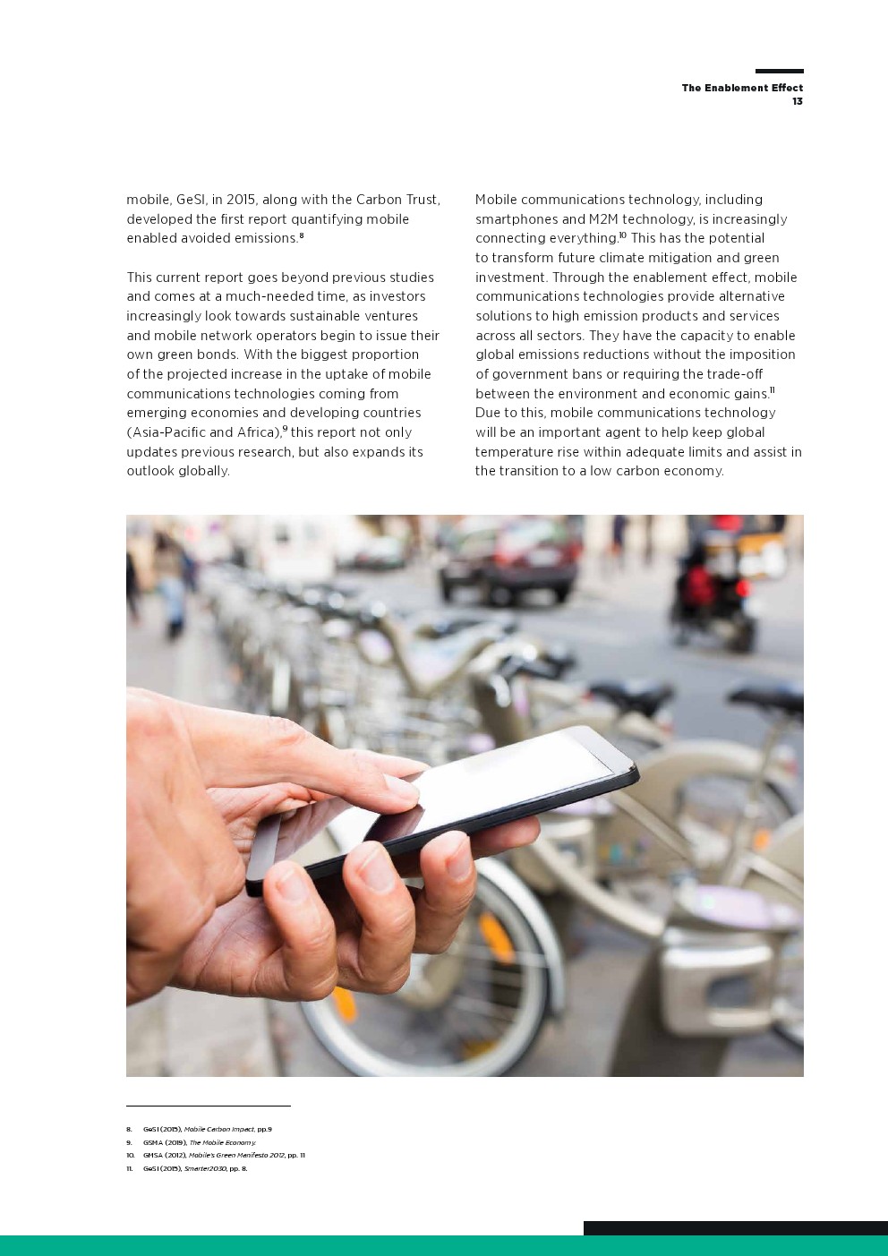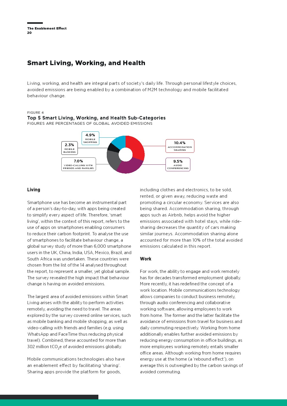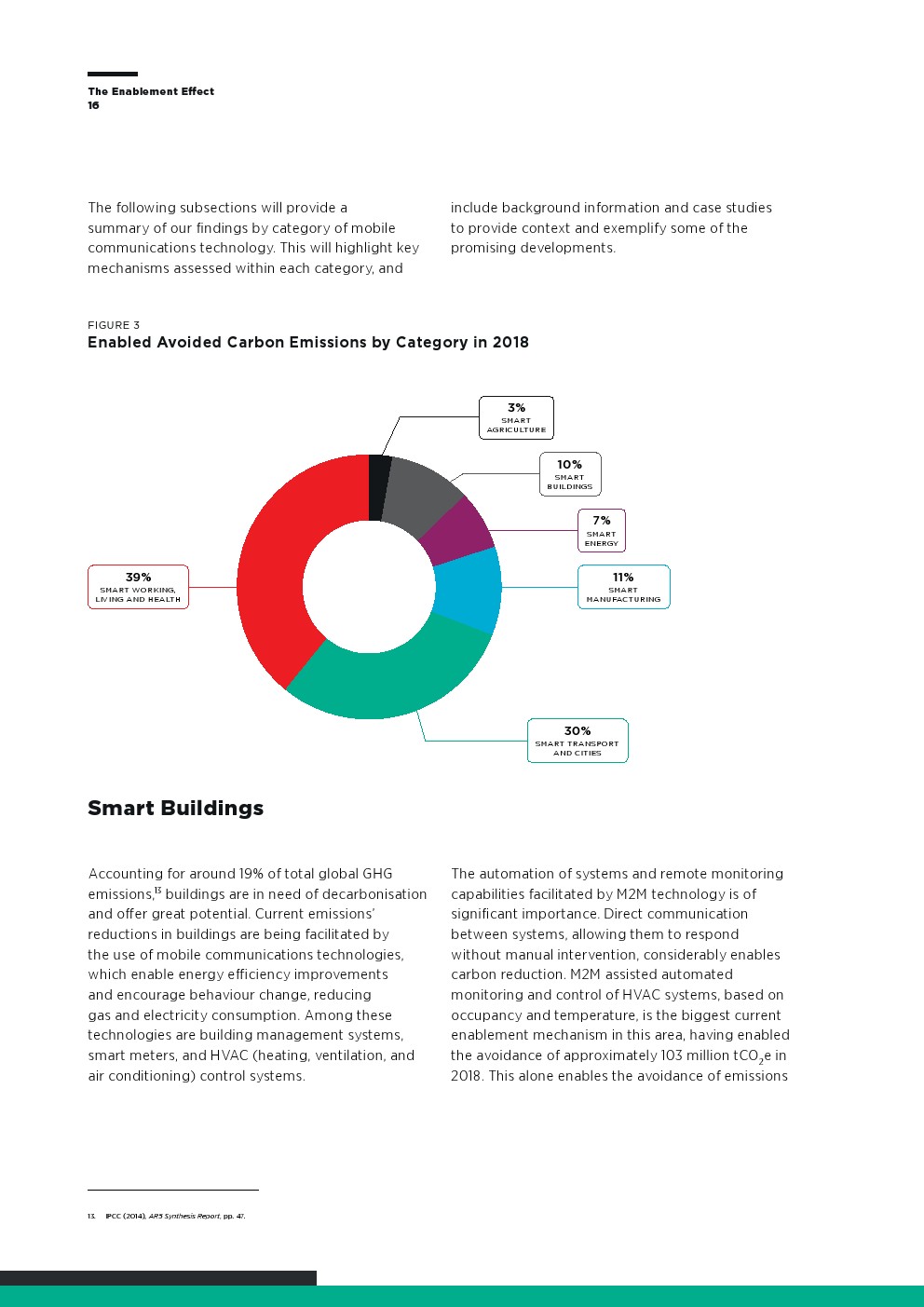 将一台机器连接到另一台机器的智能技术(M2M),也称为物联网(IoT),以及个人使用智能手机带来的行为变化都将对减少全球碳排放产生重要影响。