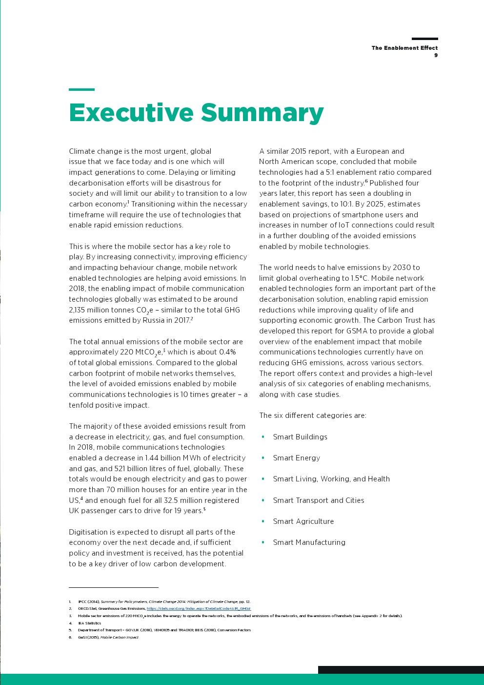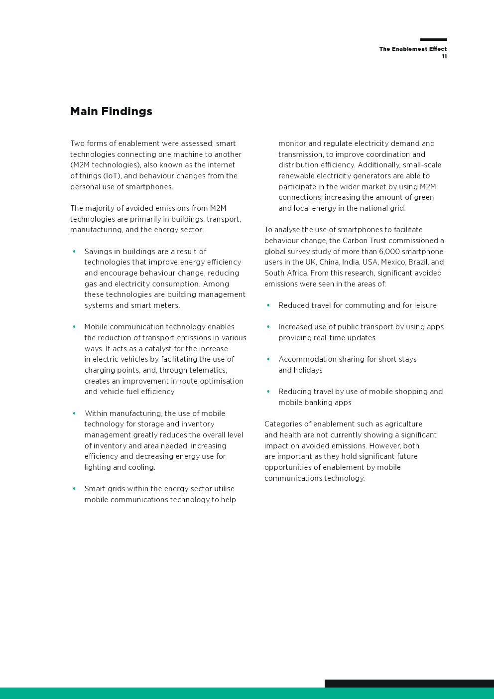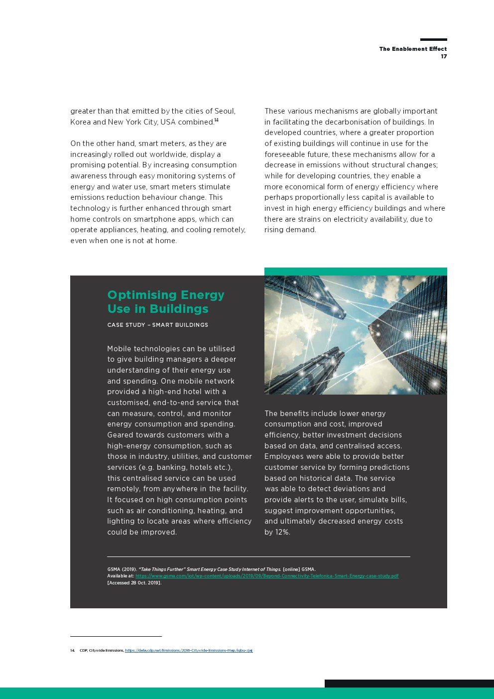 将一台机器连接到另一台机器的智能技术(M2M),也称为物联网(IoT),以及个人使用智能手机带来的行为变化都将对减少全球碳排放产生重要影响。