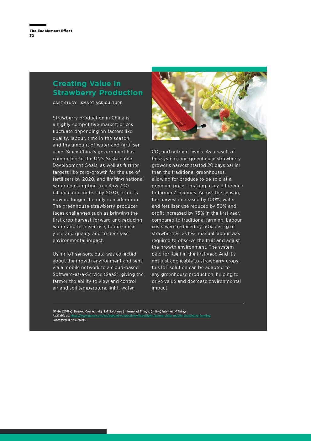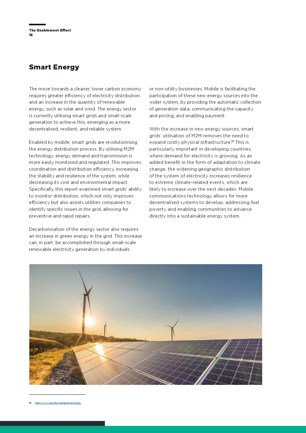 - 能源部门的智能电网利用移动通信技术监测和调节电力需求和传输,以提高协调和分配效率。此外,通过使用M2M连接,小型可再生发电机组能够参与更广泛的市场,从而提高国家电网中的绿色能源和本地能源的数量。