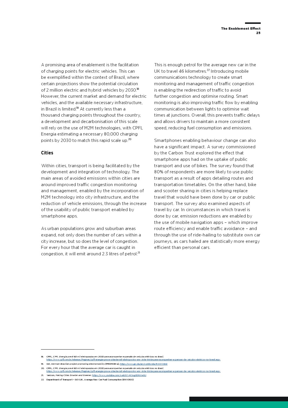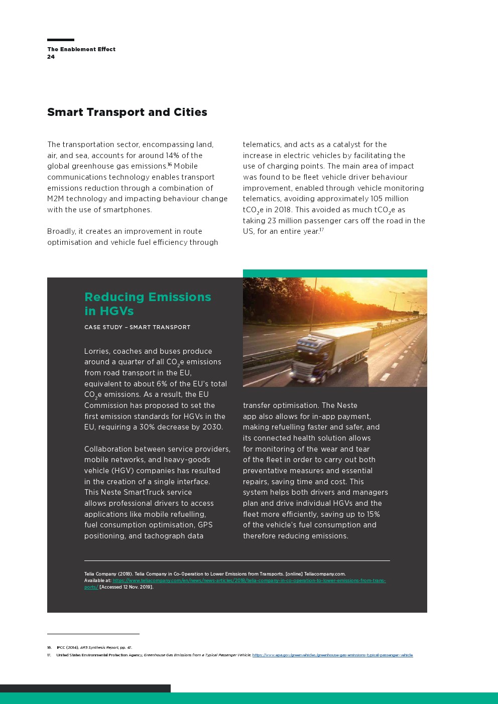 - 移动通信技术能够以各种方式减少运输碳排放。例如,它通过促进充电站的使用,提高电动汽车普及,并通过远程信息处理,改善路线优化和车辆燃油效率等。