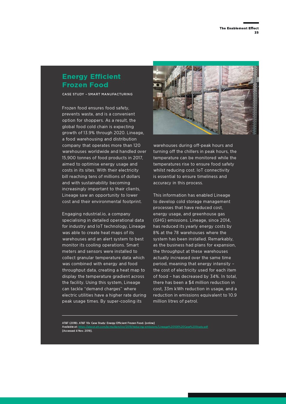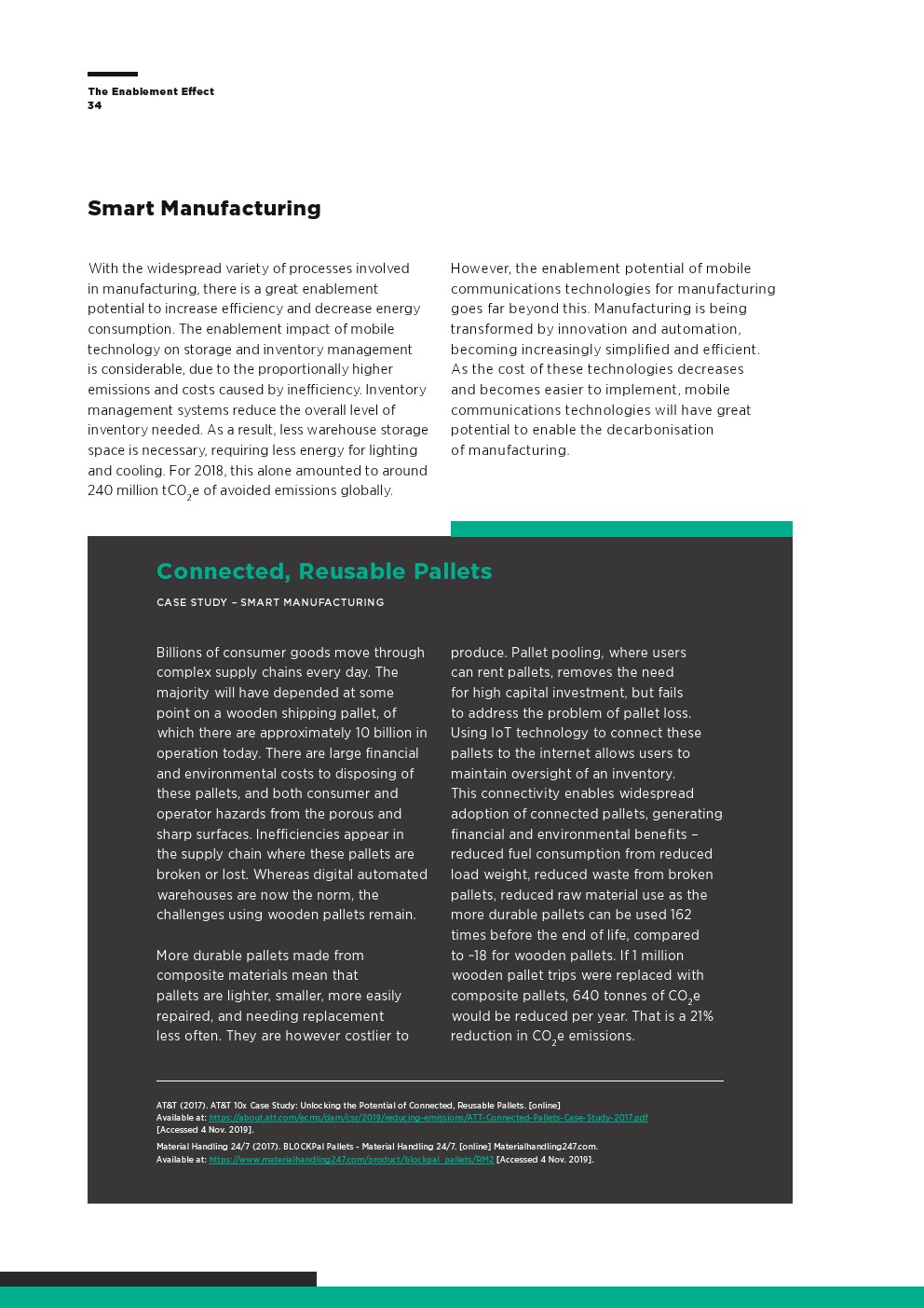 - 在制造业,使用移动技术进行存储和库存管理大大降低了所需的总体库存水平和面积,提高了效率并减少了照明和制冷的能耗。
