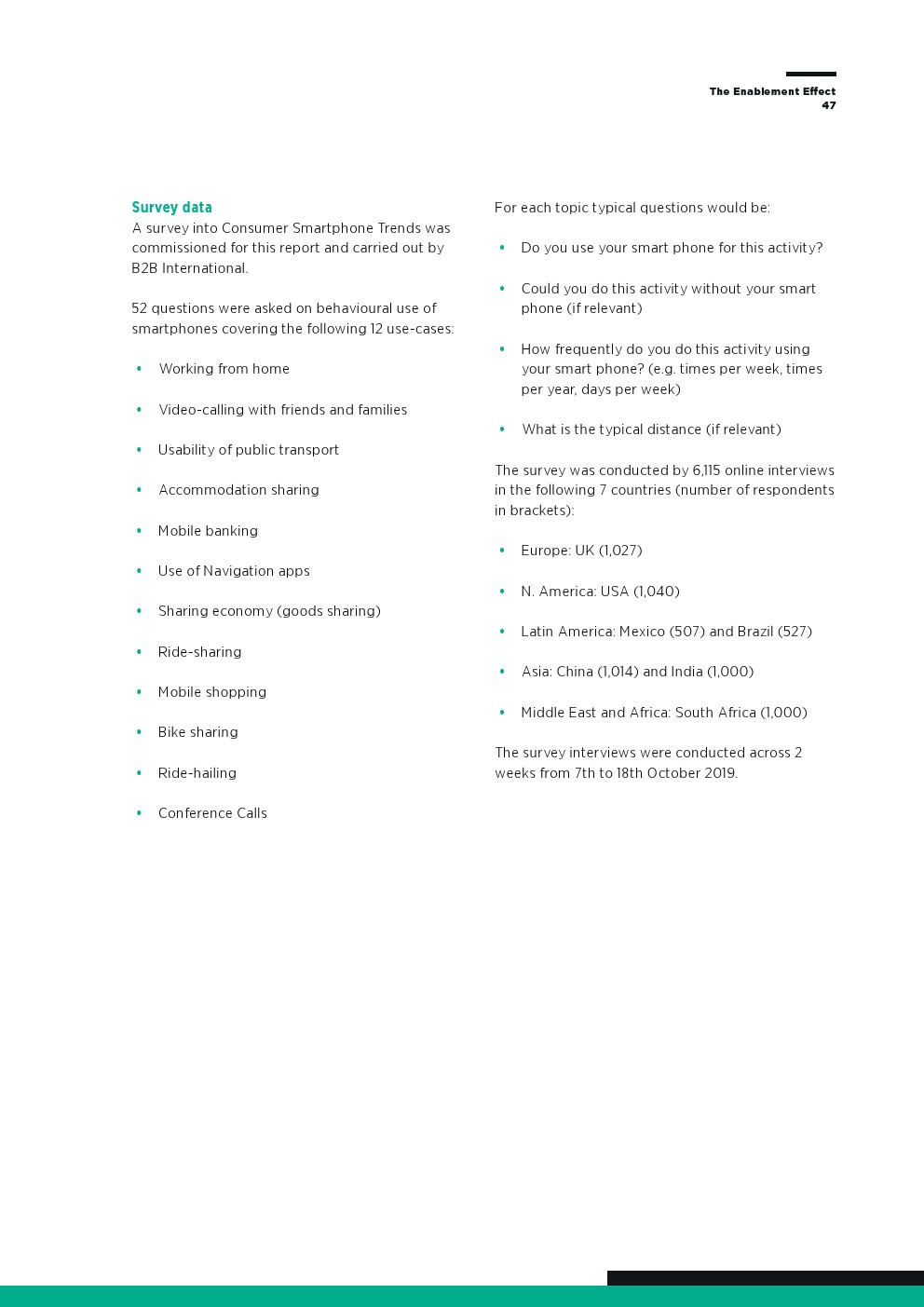 为了分析智能手机的使用以促进行为改变,GSMA对英国、中国、印度、美国、墨西哥、巴西和南非的6000多名智能手机用户进行了一项全球调查研究,在以下领域显著减少了碳排放: