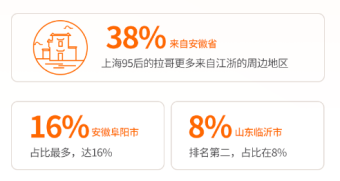 上海为三角洲城市群之首,有不少周边发达城市的年轻力量也喜欢到上海寻求发展机会。上海95后的司机有38%的人来自于安徽省。其中,安徽阜阳市为最多,占比达16%,而山东临沂市排名第二,占比在8%。虽然是在吴侬软语的地方生活工作,但在上海用户眼里,他们干起活来十分利索,效率极高。