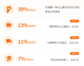 到北京跑货拉拉的95后,来自河北省的占比为39%,其中来自于邯郸市的人口最多,占13%。而人口来源数排名第二的城市是重庆,占比11%,与邯郸市几乎接近,排名第三的城市为邢台市,占比7%。他们是北京用户眼里的“中国好司机”。