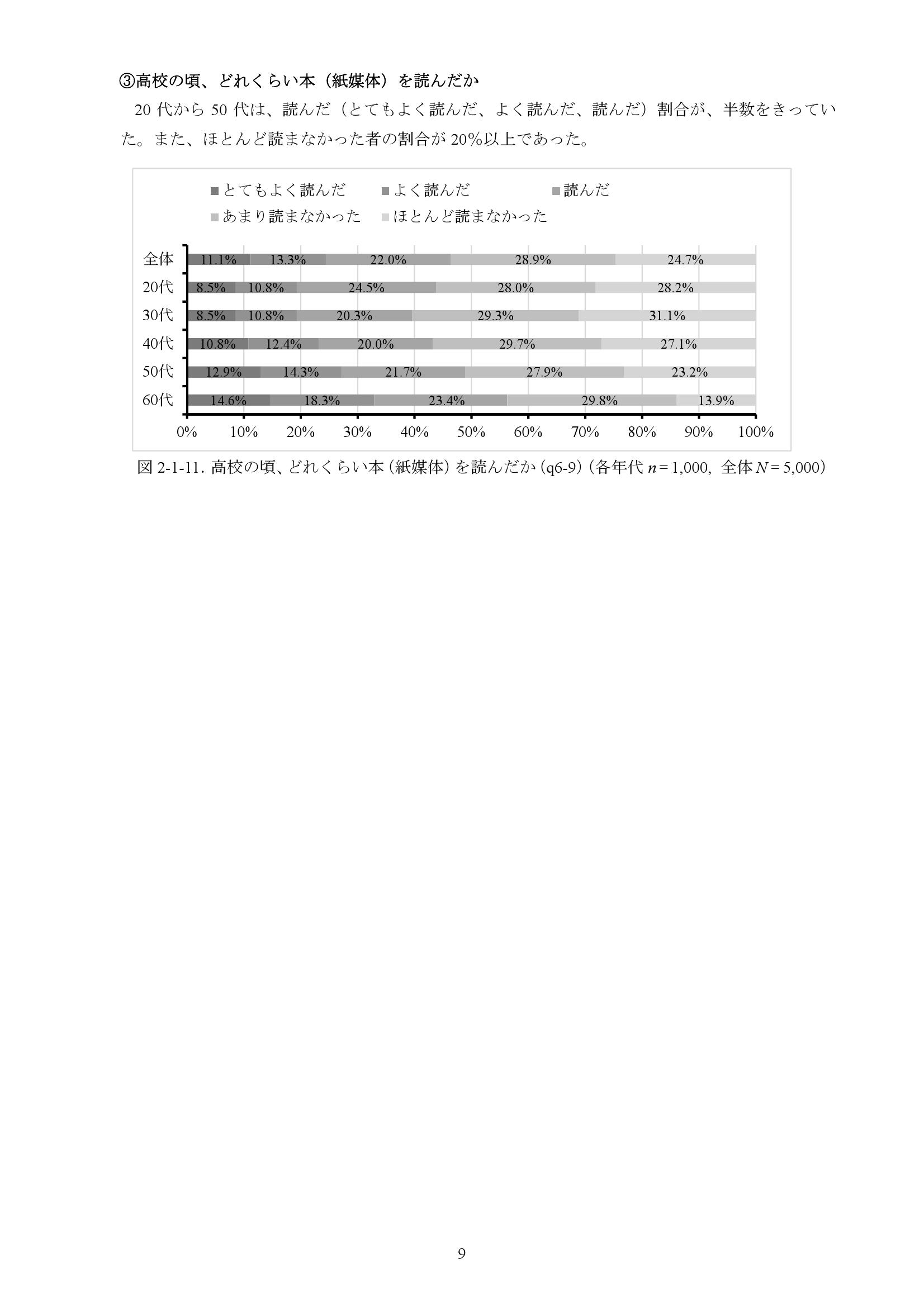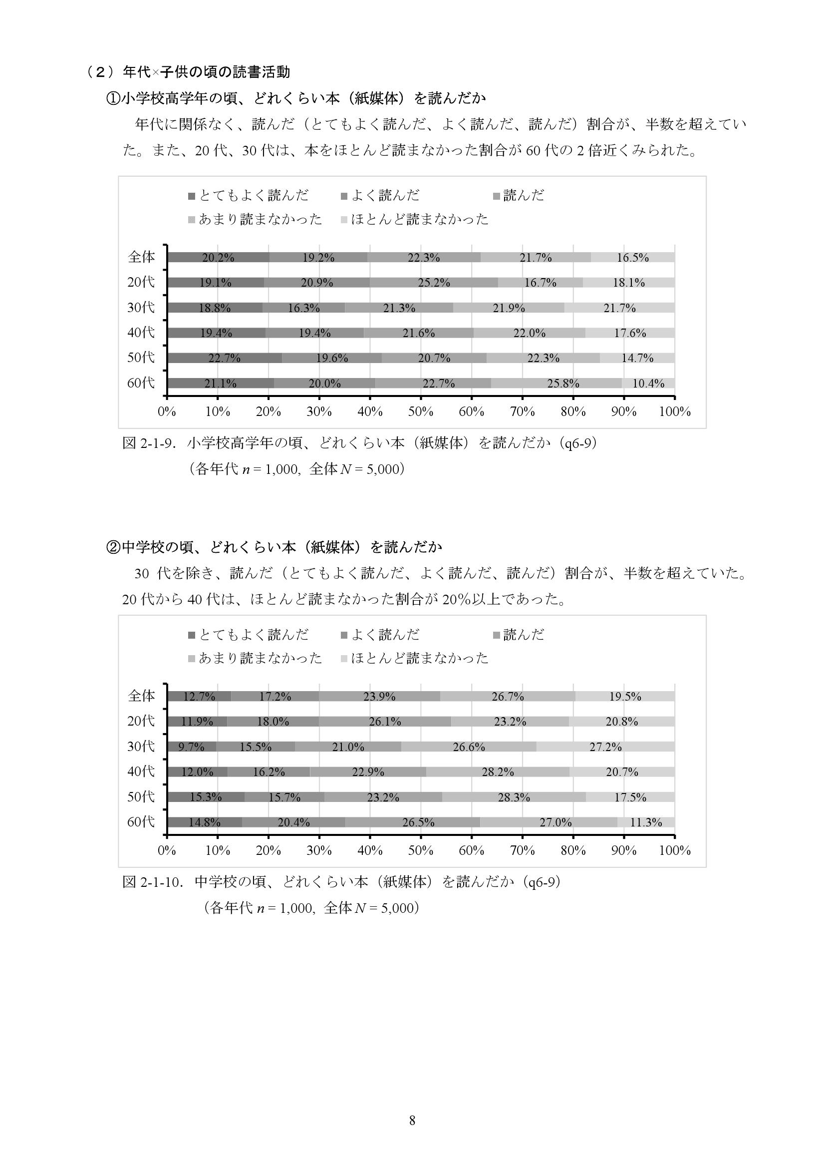 20-29岁完全不读书的人增长最为显著,达52.3%,比2013年增加一倍。60-69岁年龄段中完全不读书的人在2013年调查时为23.3%,此次也增加到44.1%。
