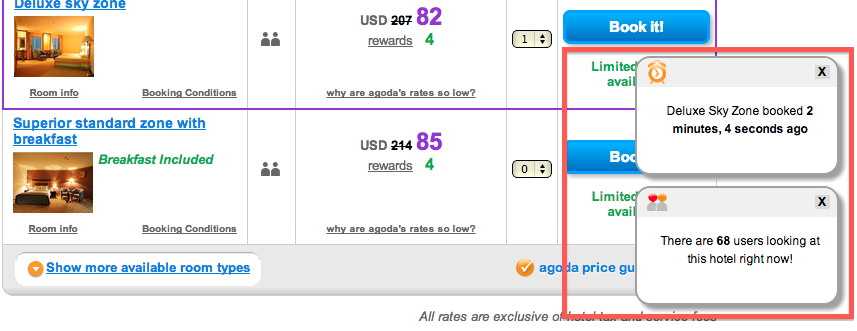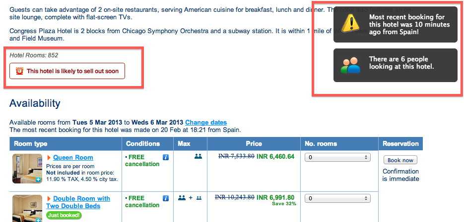 现在,在消费者当中颇为流行的社交媒体平台实现了上述功能。那么假设换一种情况,即当消费者搜索和查找某款产品(如航班和酒店等)时,网站能否让顾客知道其它顾客对同一个产品是否进行了预订或收藏等操作?