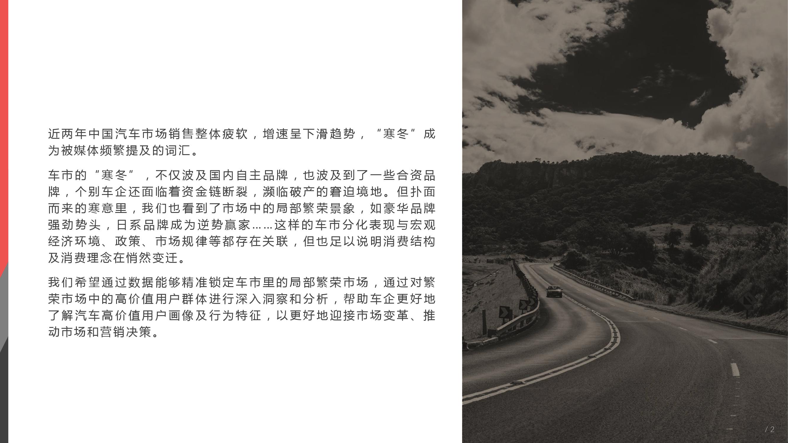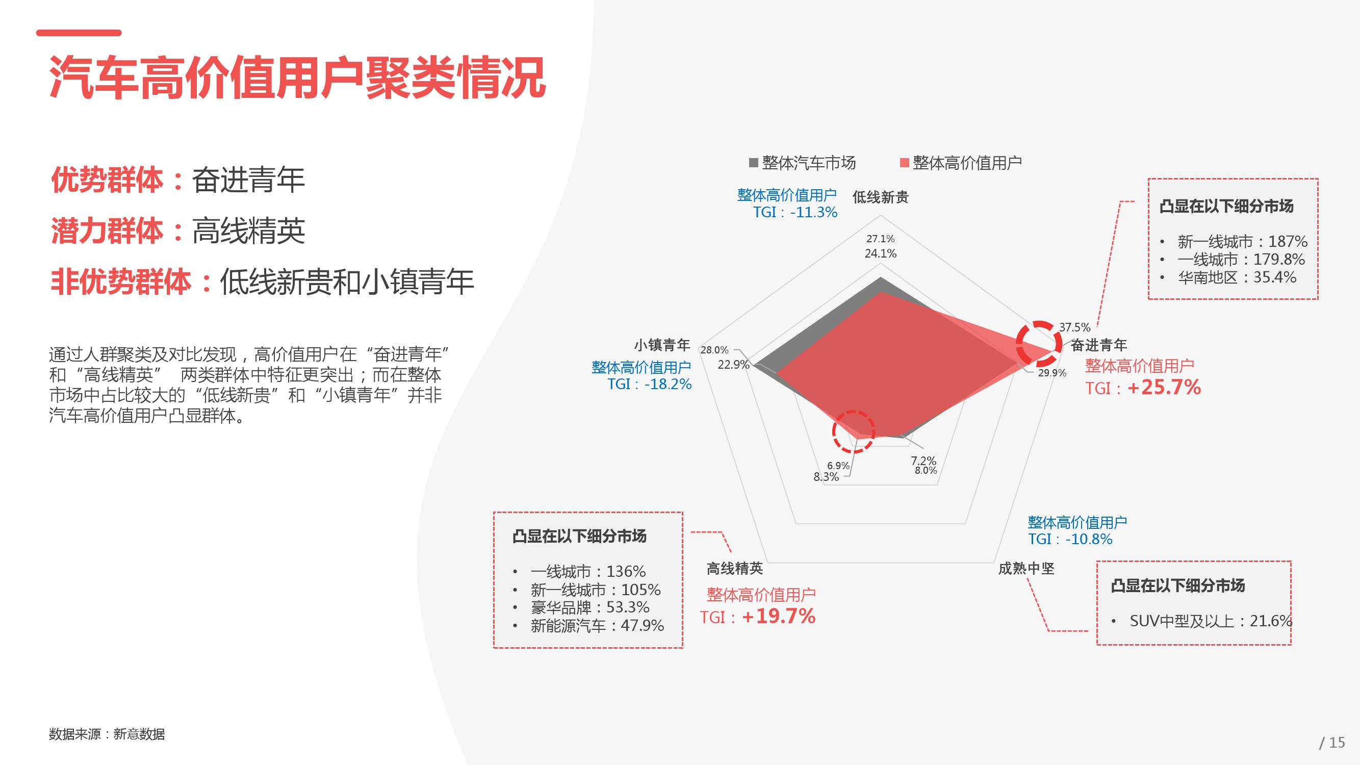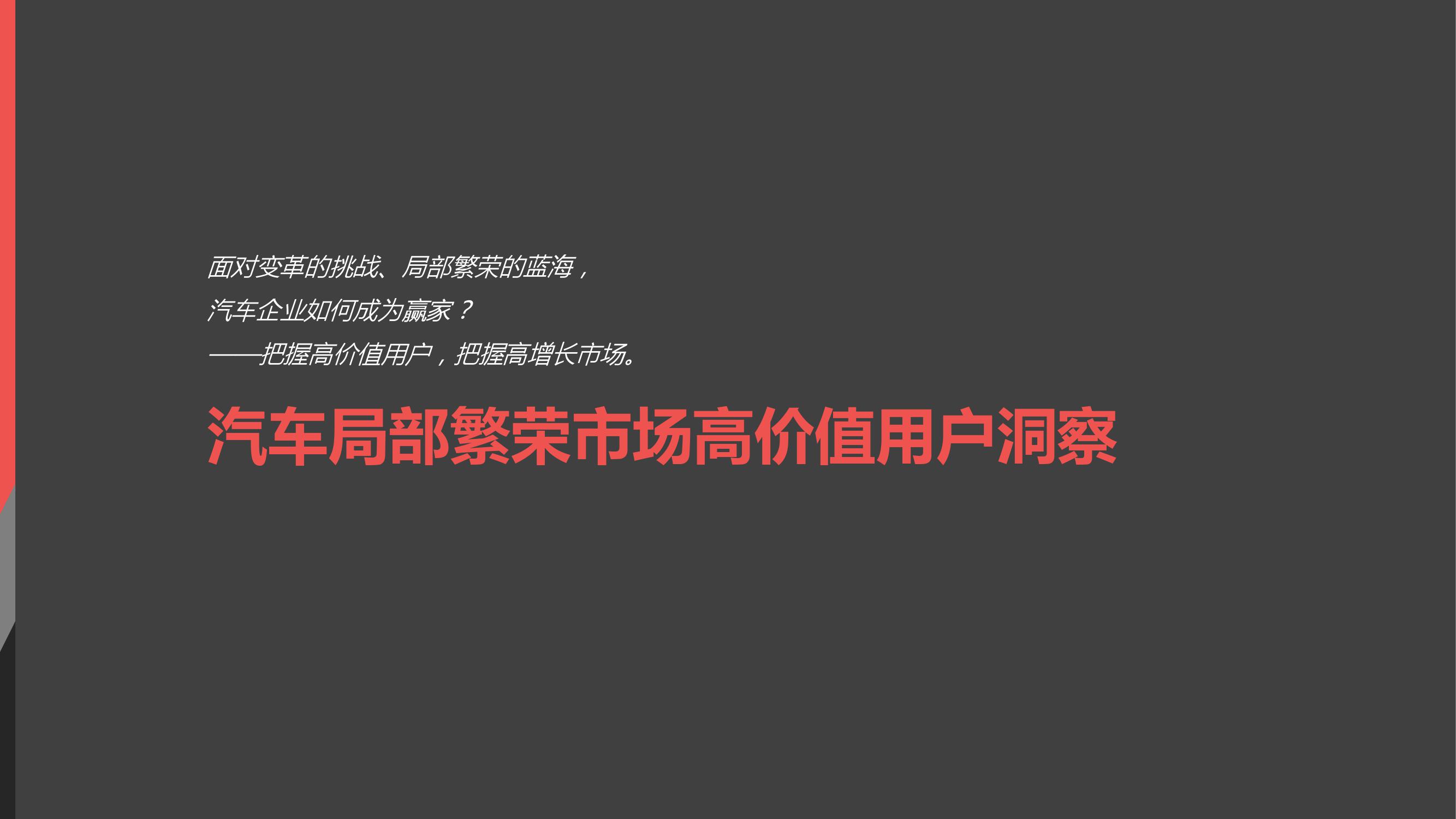此次,新意互动联合京东重磅推出《2019中国汽车高价值用户报告——刻画局部繁荣市场群体特征与电商行为真相》,基于新意数据和京东大数据,锁定汽车局部繁荣市场,并对汽车局部繁荣市场中的高价值用户群体进行深入洞察和分析,旨在帮助车企更好地了解汽车高价值用户画像及行为特征,更好地迎接市场变革、推动市场和营销决策。