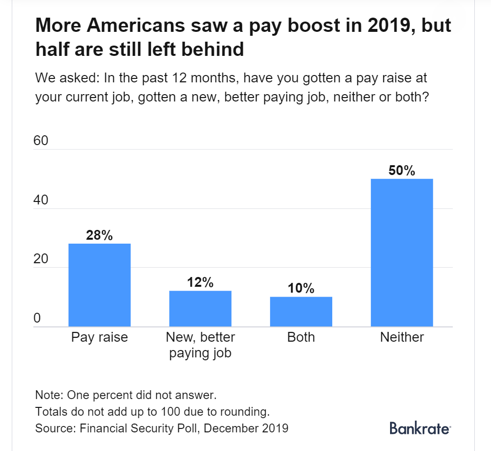 在过去12个月获得更高薪水的近49%的受访者中,约28%获得了加薪,12%的找到了收入更高的工作,还有10%是通过两者实现的。