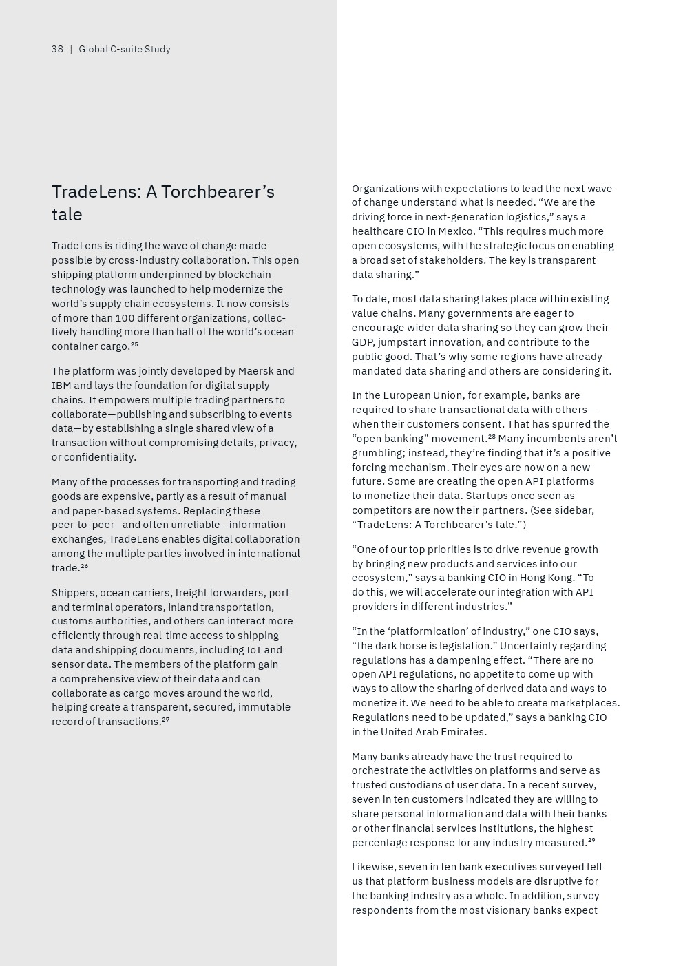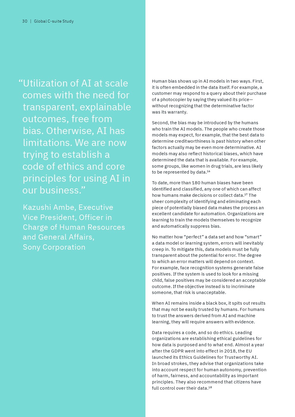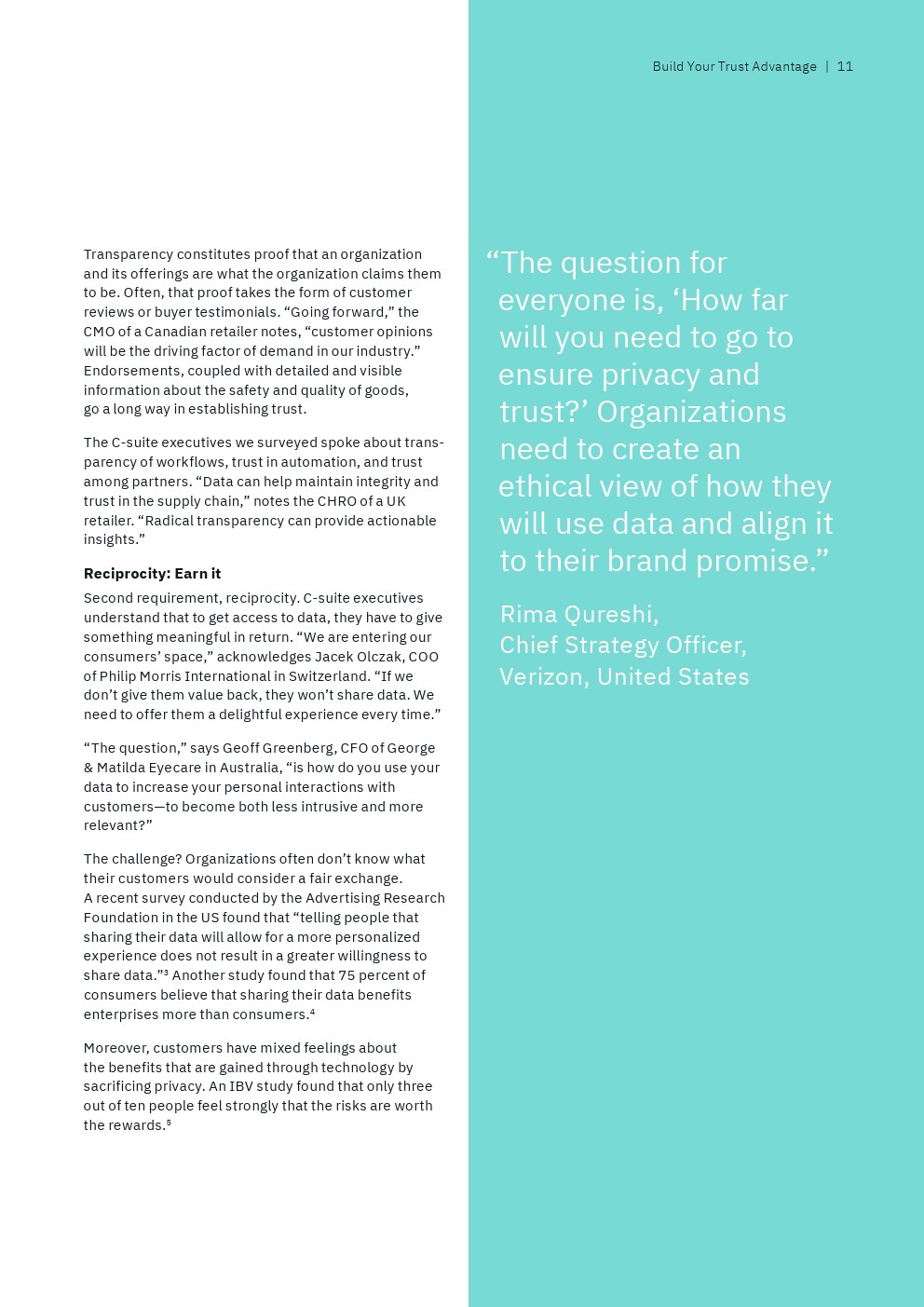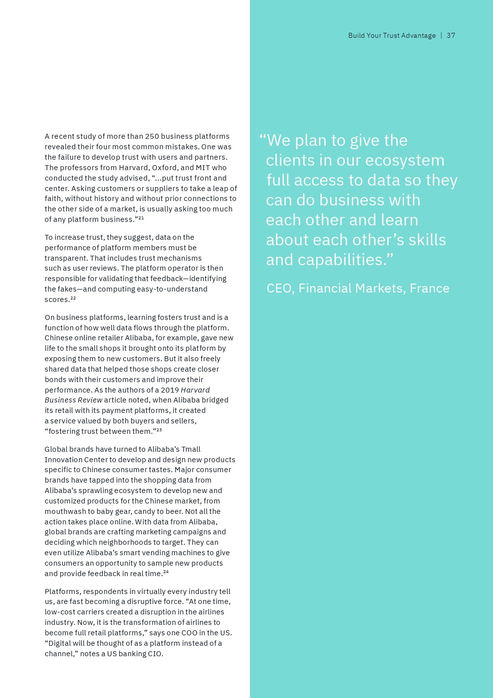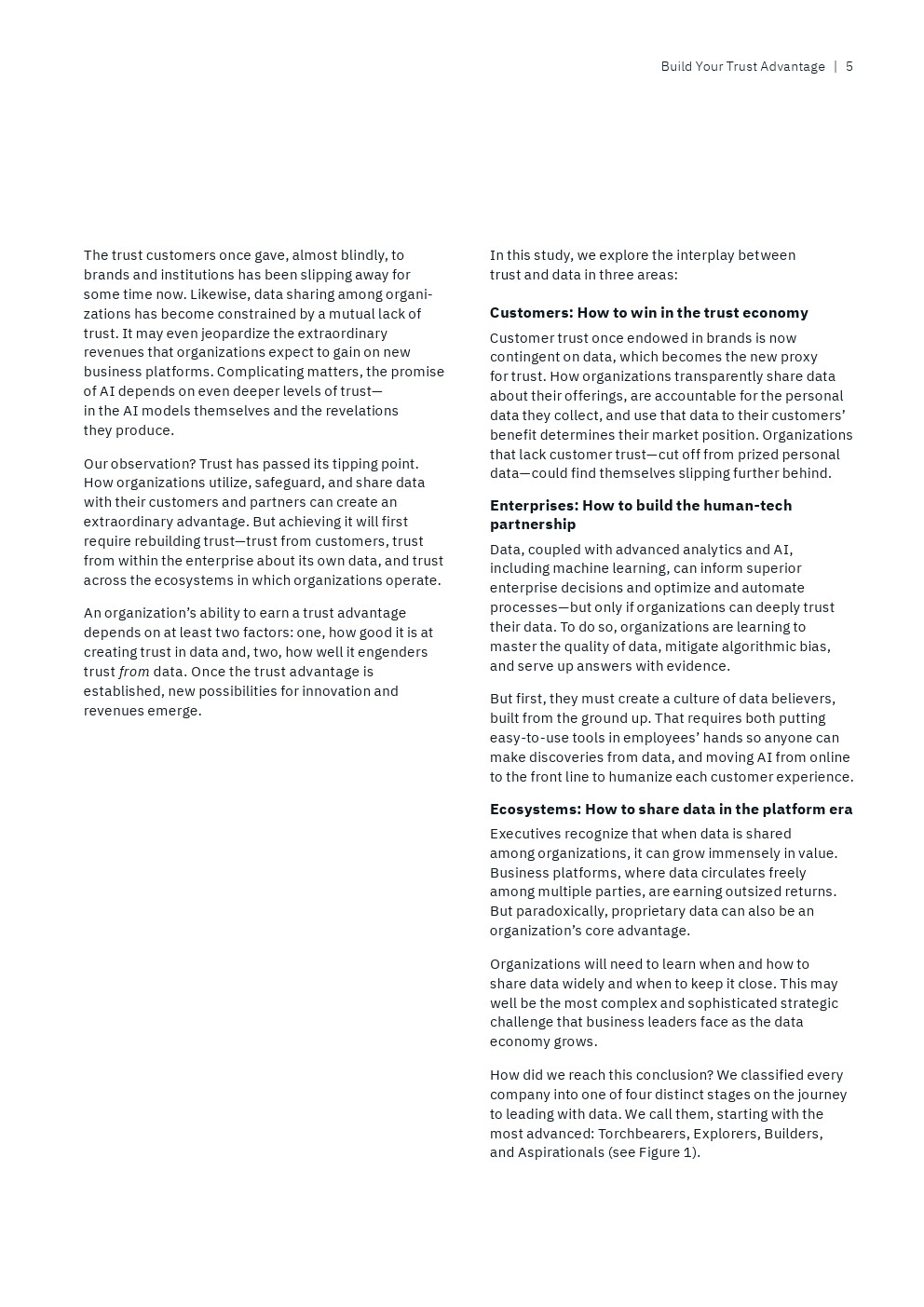 IBM从接受调查的13000多名高管筛选出“数据领导者”,即排名前9%的高管人员,他们代表了那些“将数据战略与业务战略融合在一起,以信任为垂线”的全球性企业。另一方面,还有25%的“后进”受访者才刚刚开始“整合企业范围的业务和数据战略,并没有数据驱动的文化”。