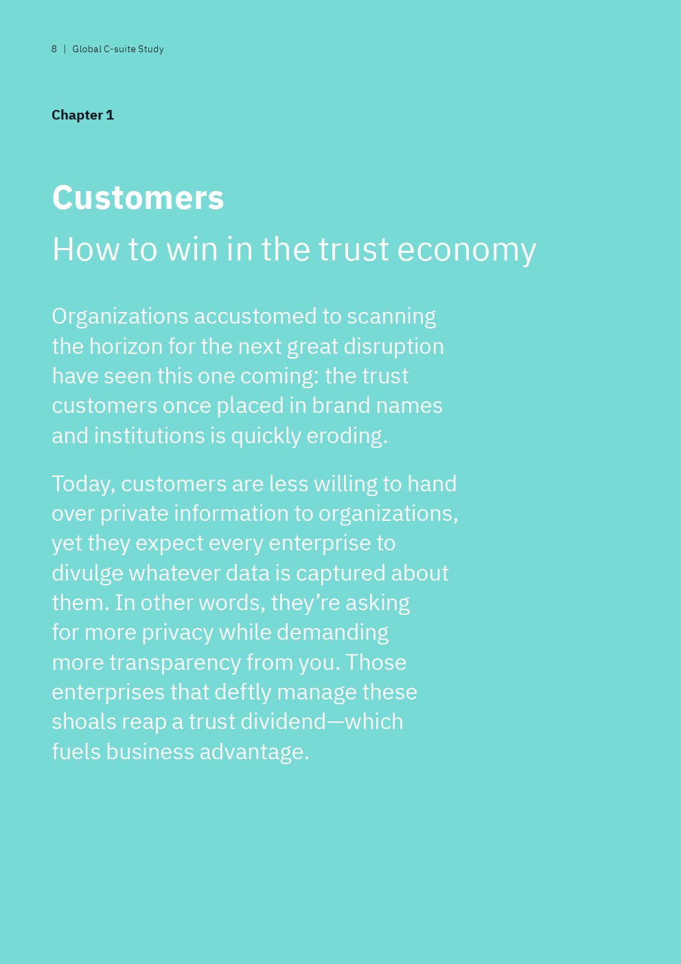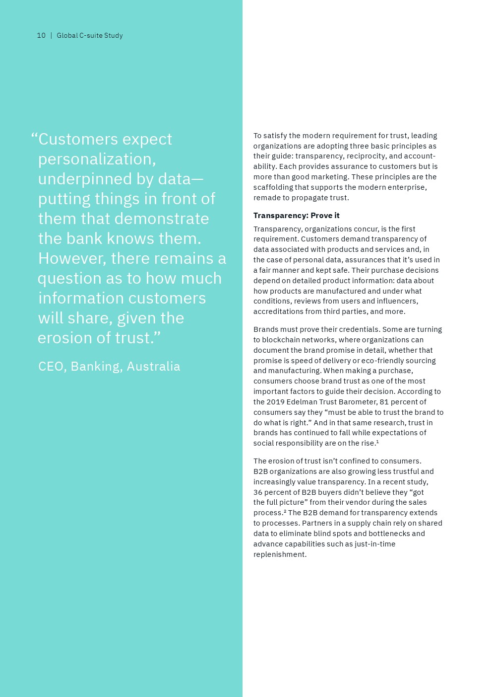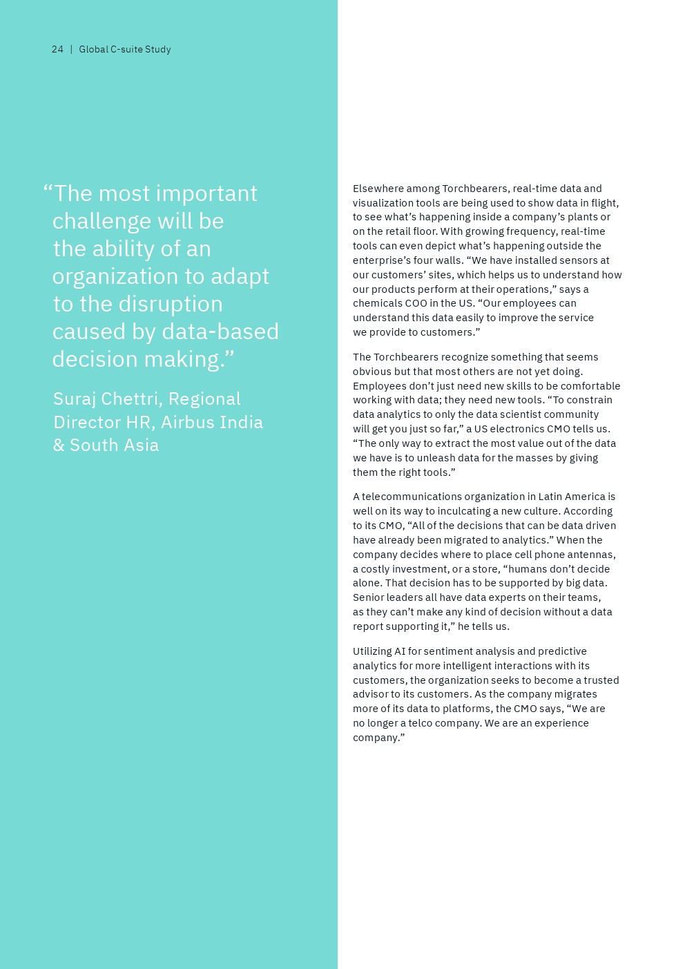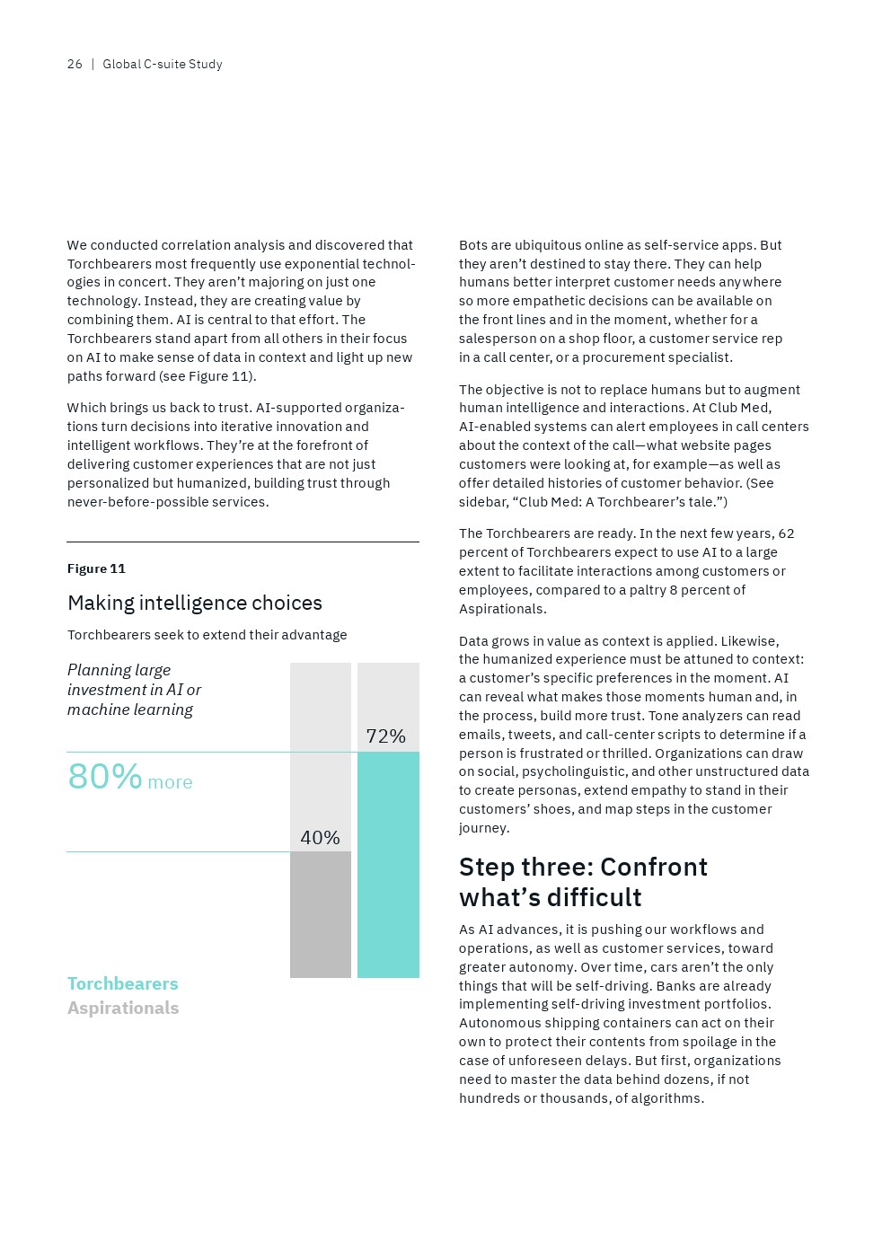 与此同时,很少有后进企业的高管(22%)表示他们的首席执行官可以广泛地访问准确且可操作的360度客户数据,而69%的领袖企业高管有这种能力。
