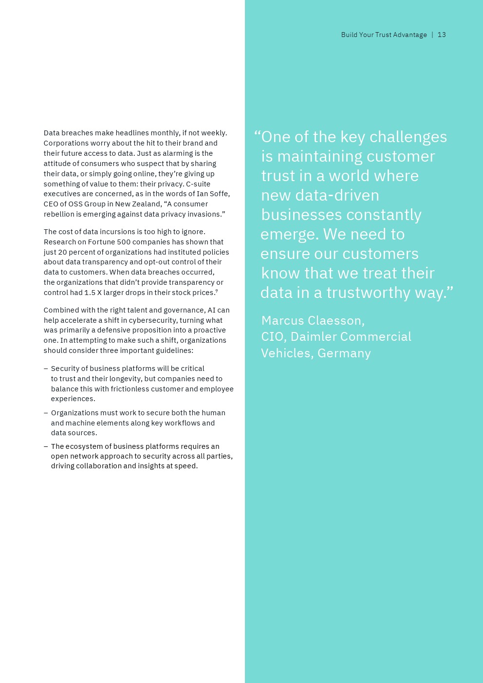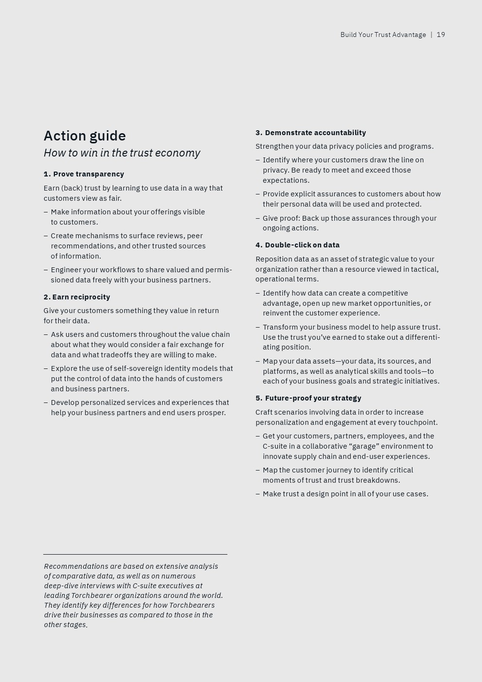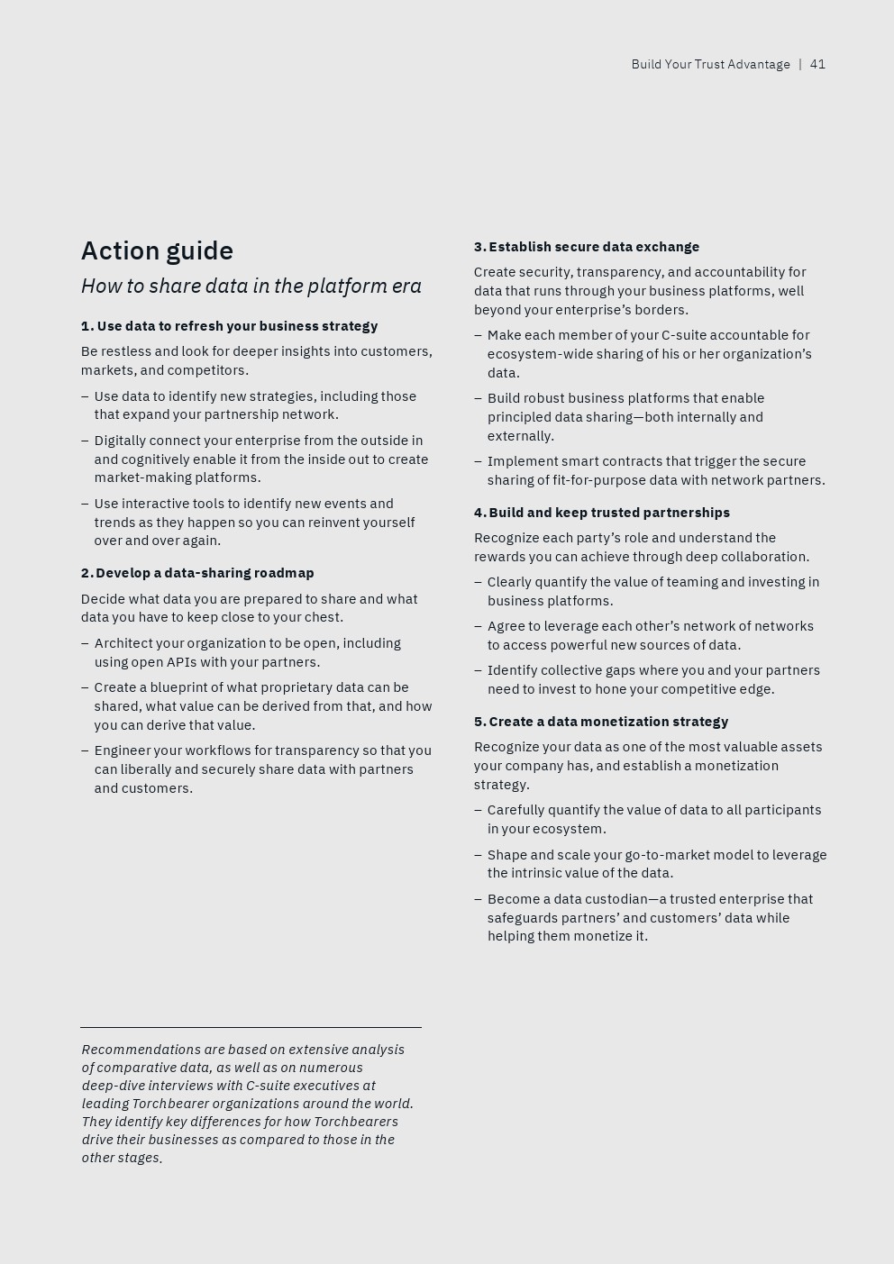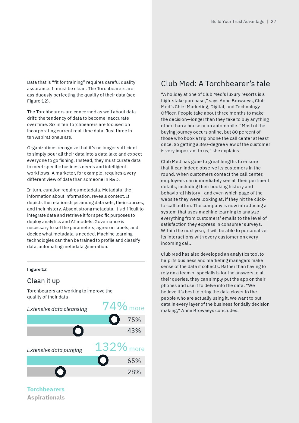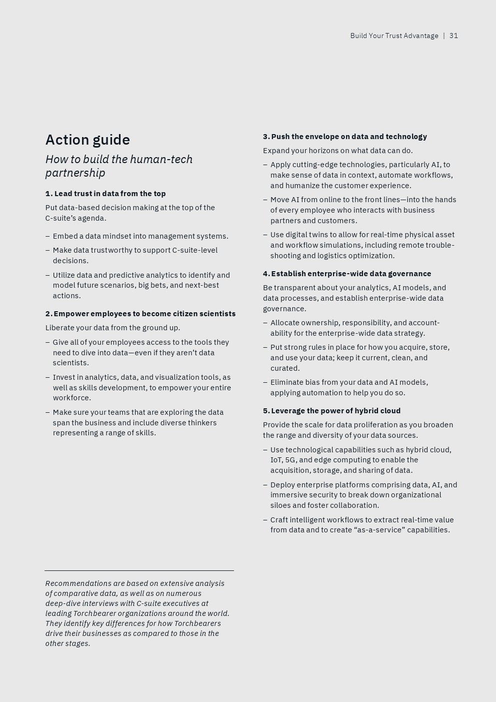数据治理也是一个关键话题。只有22%的后进企业明确定义了收集、使用和共享数据的规则,相比之下,69%的领袖企业的高管已经有这些规则。