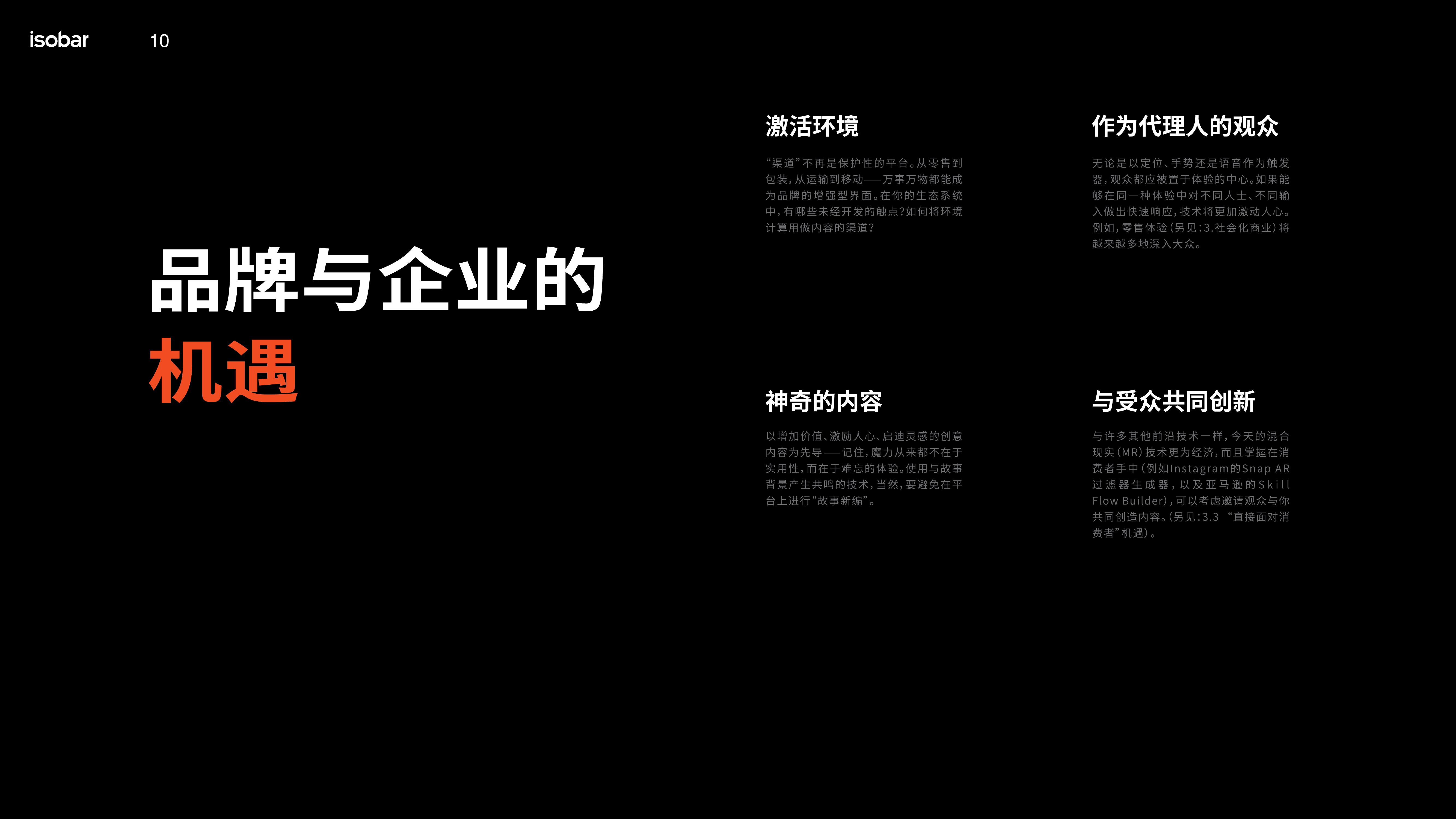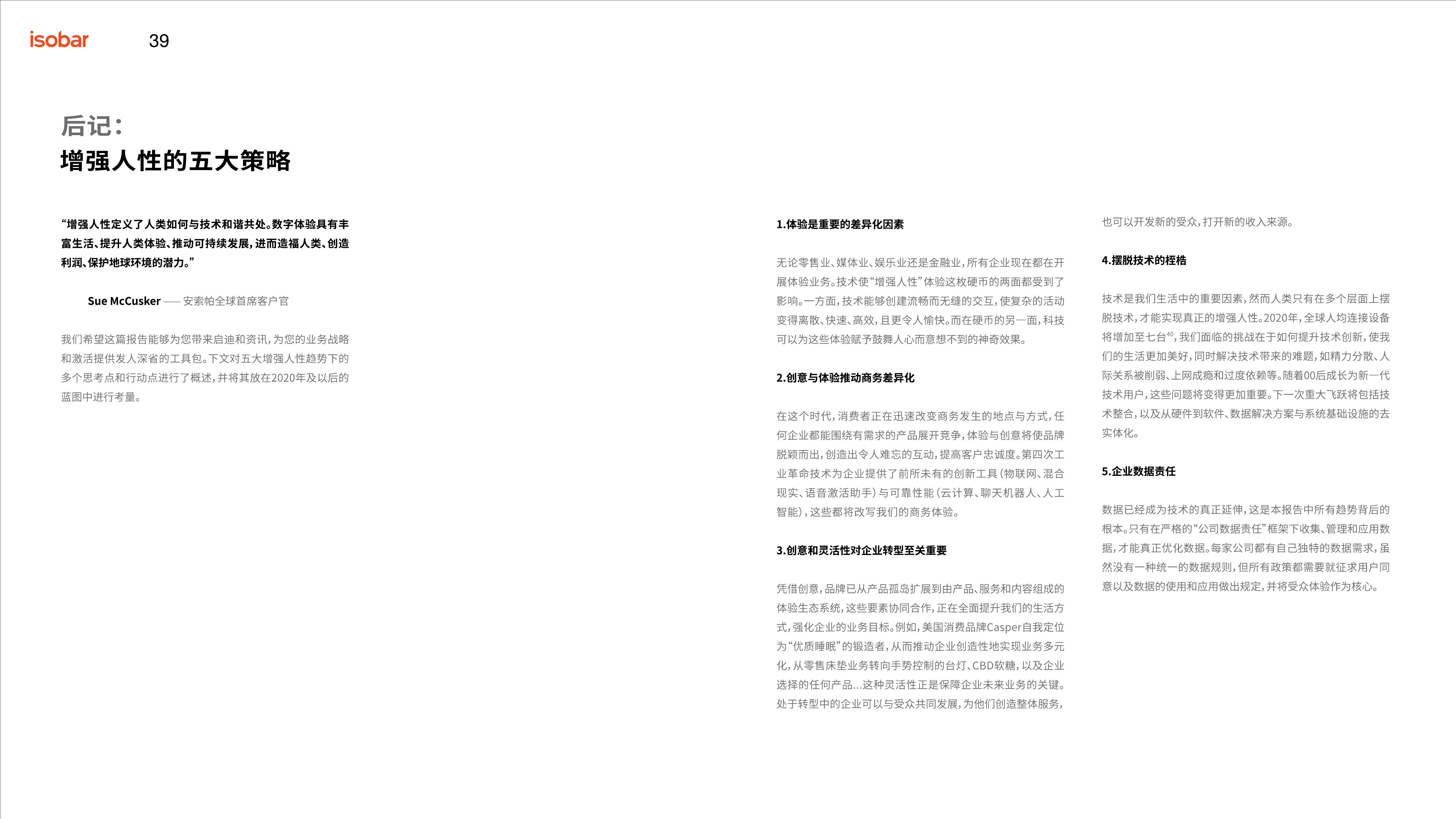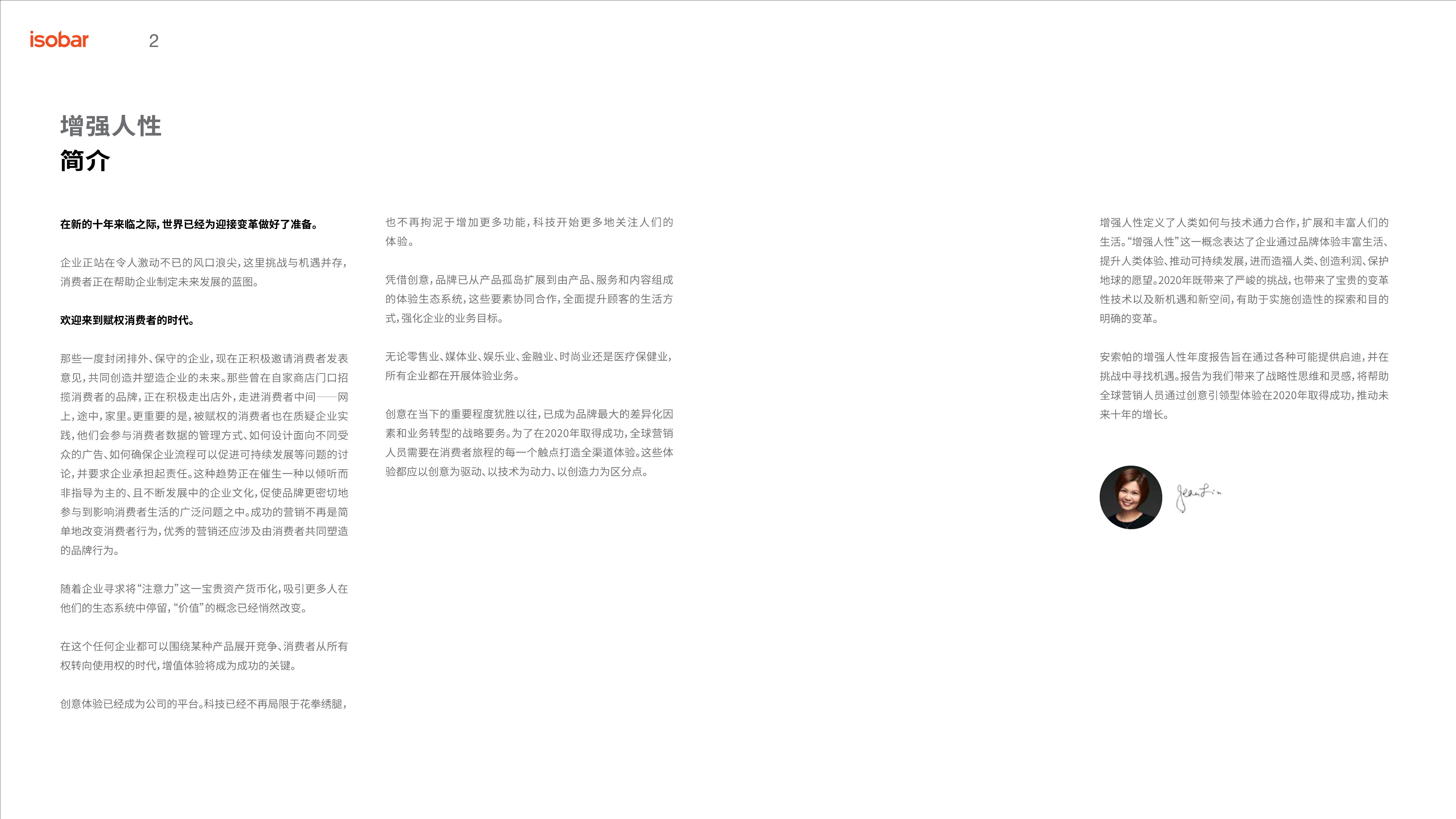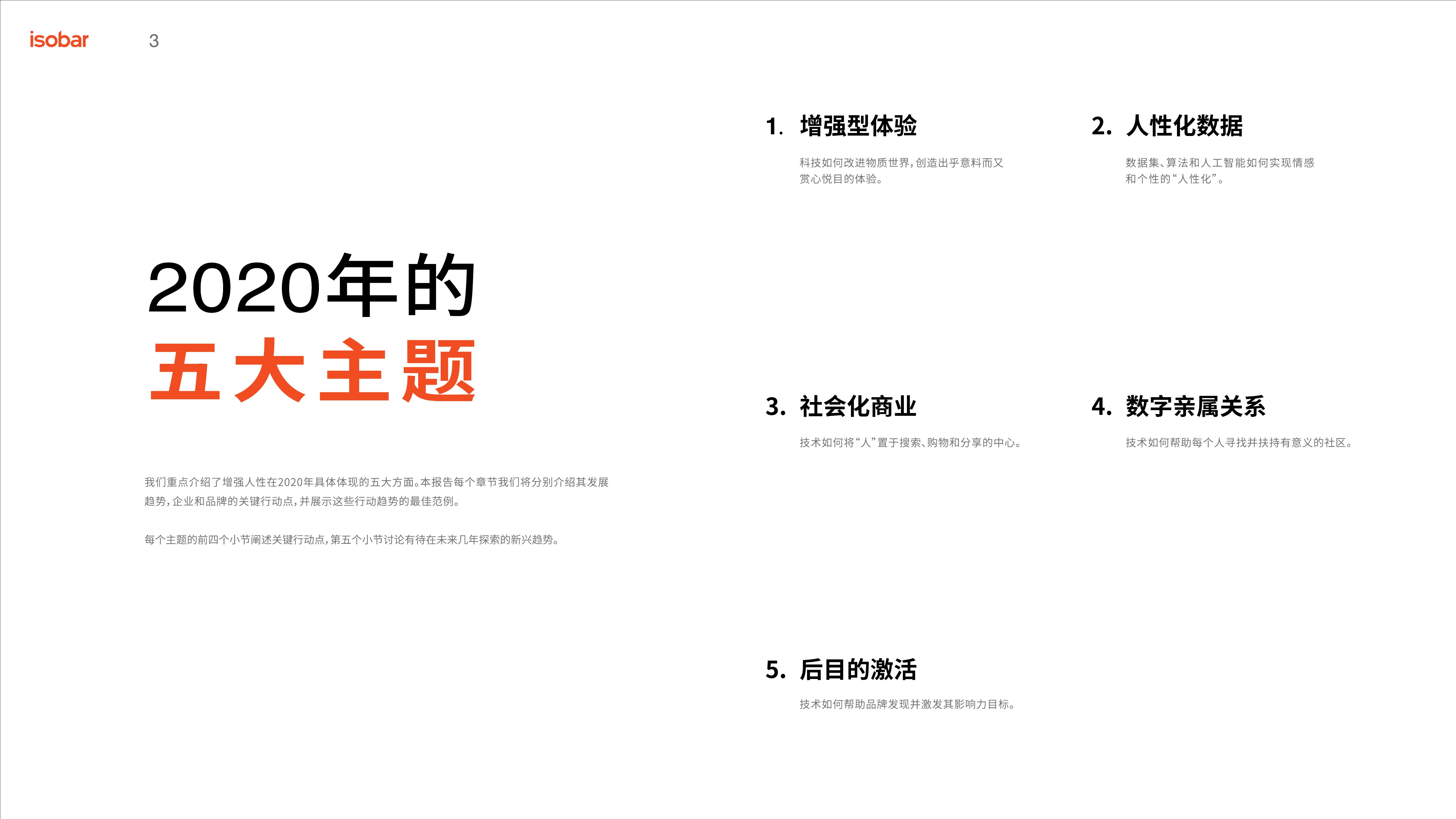 “增强人性”的概念,定义了人性如何与技术和谐共存,扩展并丰富生活,并以此为主题连续三年推出数字营销趋势报告。今年的报告着重阐述了创意和“创意体验” 对于2020年以后的企业和品牌如何至关重要。