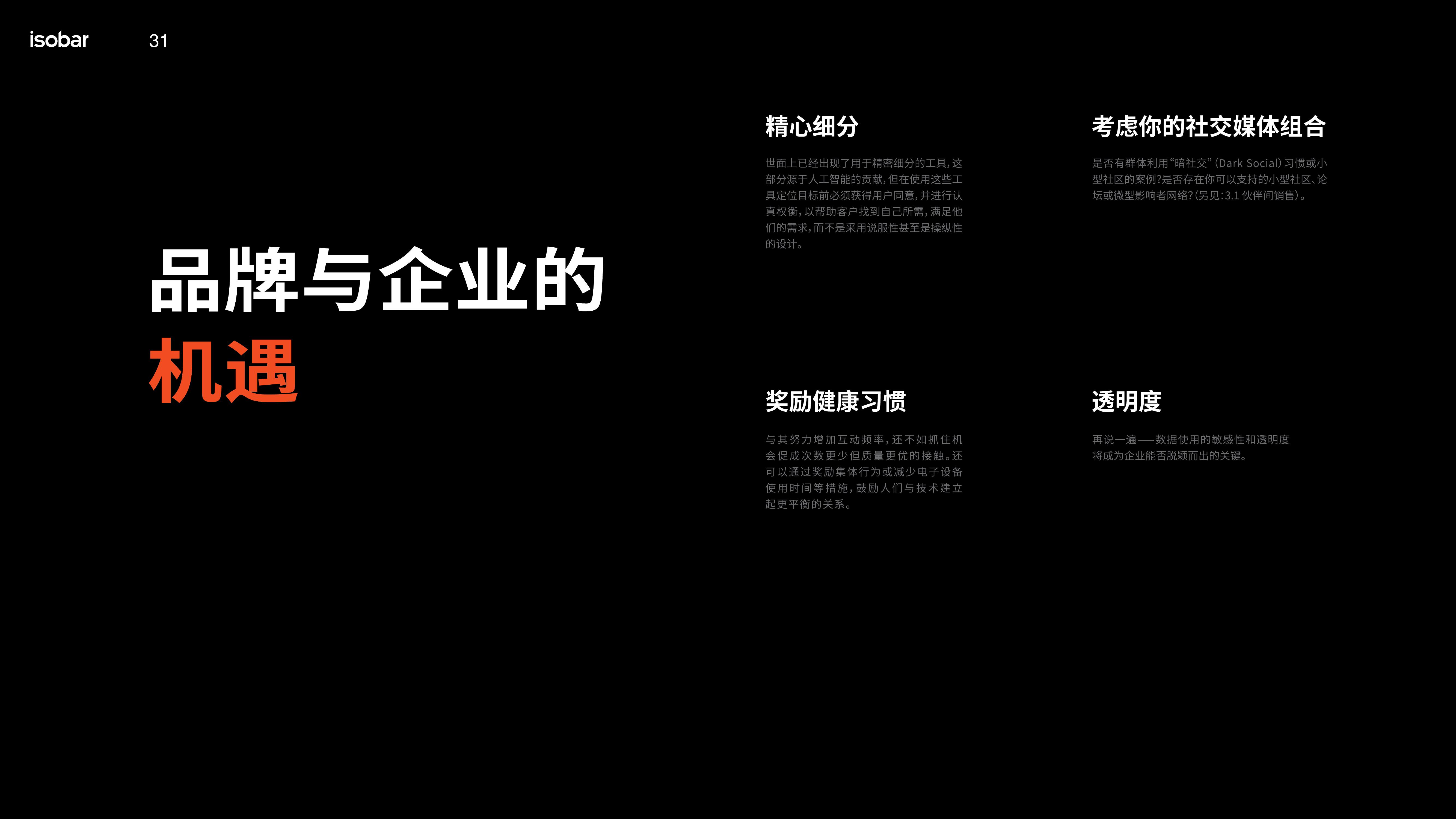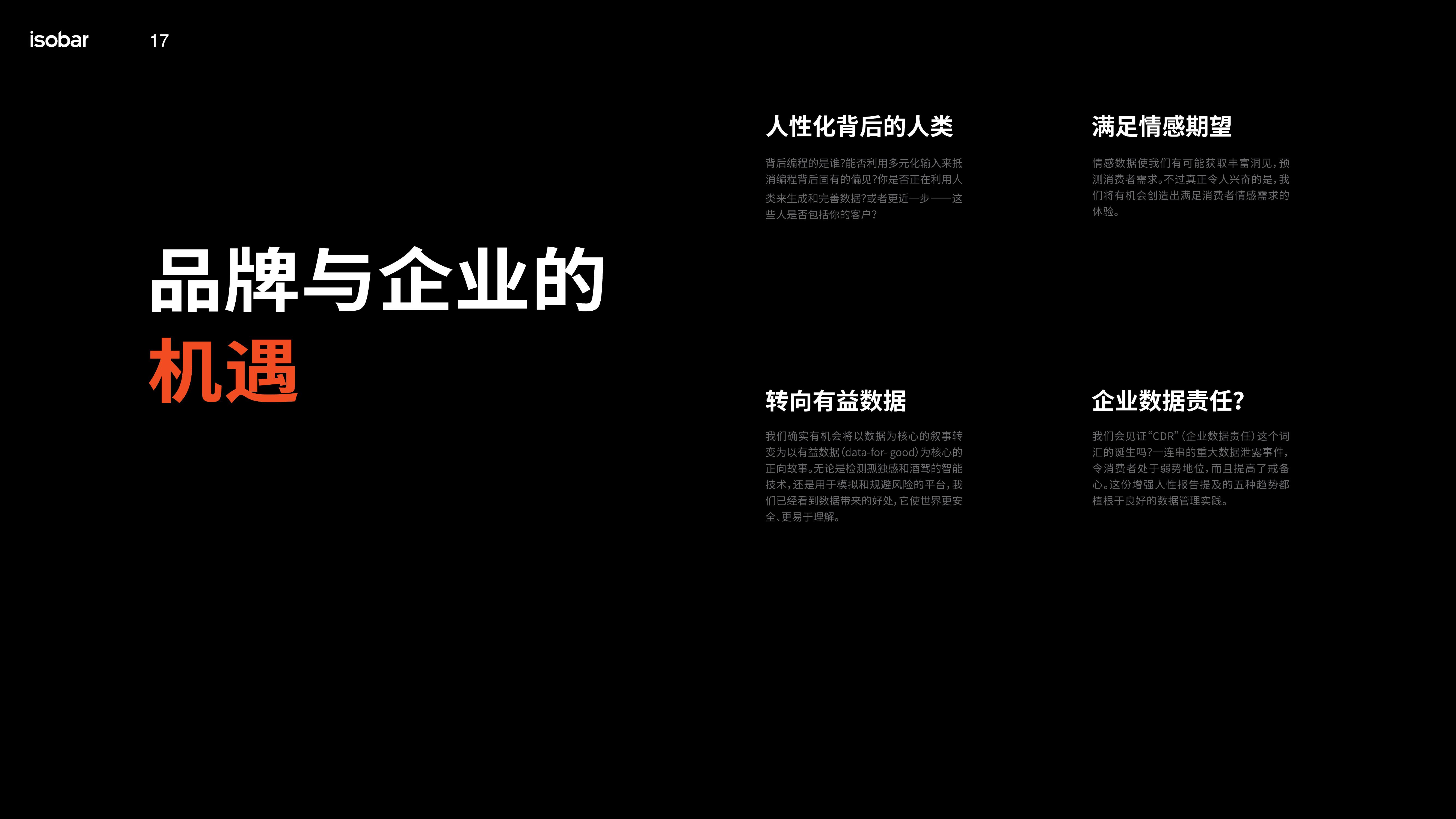 数据已经成为技术的真正延伸,这是本报告中所有趋势背后的根本。只有在严格的“公司数据责任”框架下收集、管理和应用数据,才能真正优化数据。每家公司都有自己独特的数据需求,虽然没有一种统一的数据规则,但所有政策都需要就征求用户同意以及数据的使用和应用做出规定,并将受众体验作为核心。