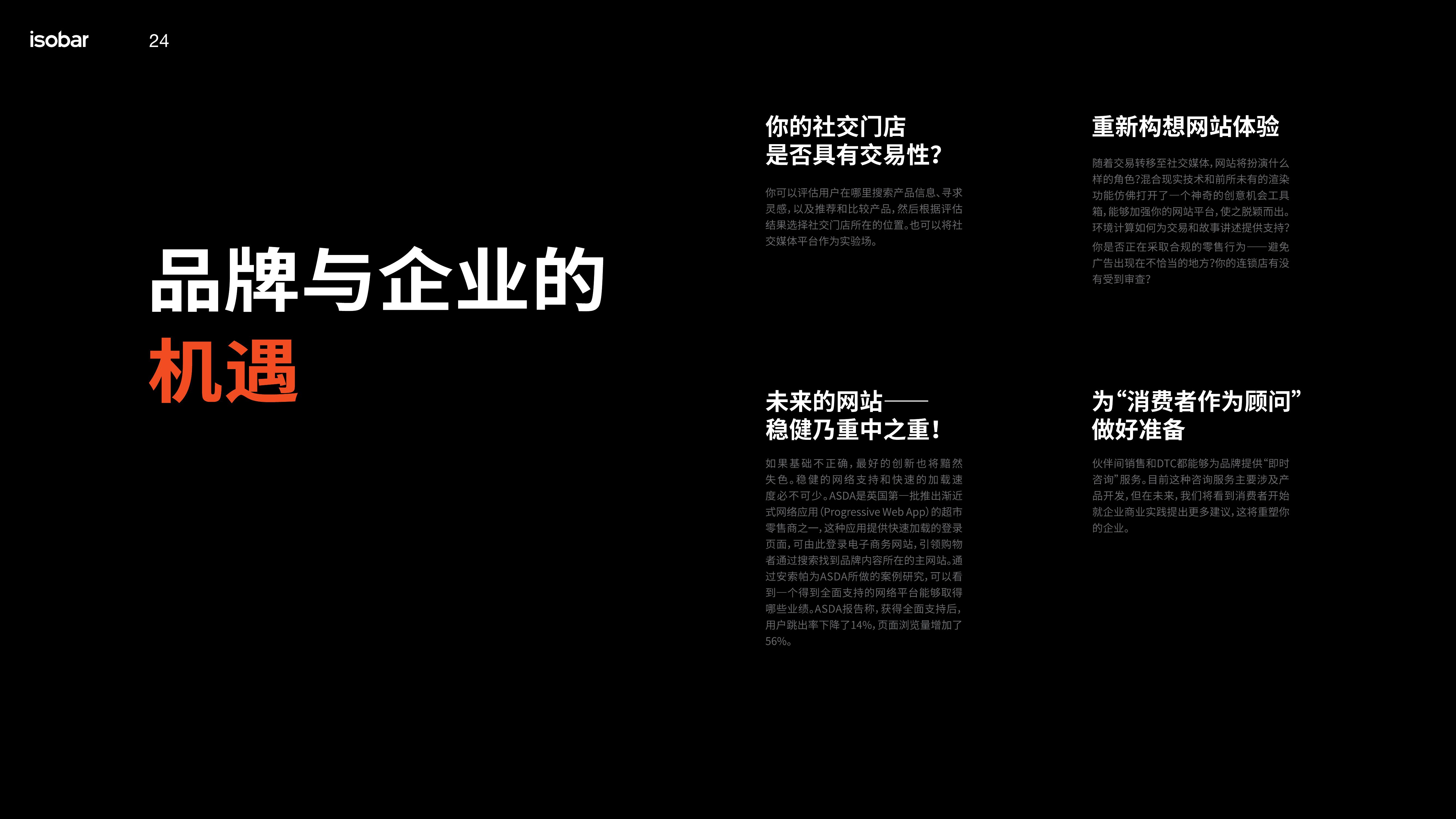 在这个时代,消费者正在迅速改变商务发生的地点与方式,任何企业都能围绕有需求的产品展开竞争,体验与创意将使品牌脱颖而出,创造出令人难忘的互动,提高客户忠诚度。第四次工业革命技术为企业提供了前所未有的创新工具(物联网、混合现实、语音激活助手)与可靠性能(云计算、聊天机器人、人工智能),这些都将改写我们的商务体验。