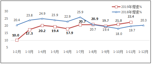 行业利润与业务收入同步增长。1-11月,全行业共实现营业利润1031亿元,同比增长22.4%,增速同比提高14.9个百分点,较1-10月提高7.3个百分点。