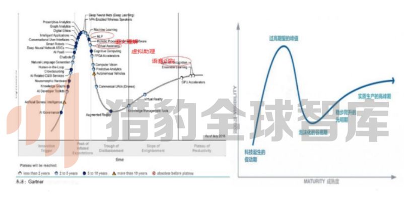 根据Gartner在2018年7月发布的AI技术成熟度曲线,语音理解、虚拟助理已经进入泡沫化低谷期阶段,而语音识别则进入实质生产的高峰期,这意味着语音识别技术的场景落地大幕已经开始。